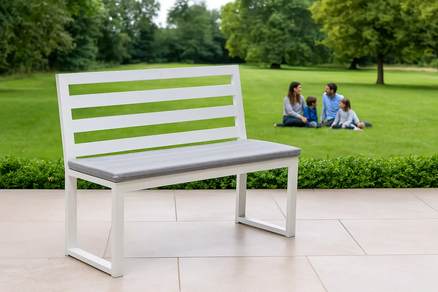 Fabricado con aluminio de alta calidad, este banco para terraza o patio está diseñado para resistir las inclemencias del tiempo y el desgaste diario. Su estructura sólida y resistente proporciona una base estable y segura para años de uso sin preocupaciones.