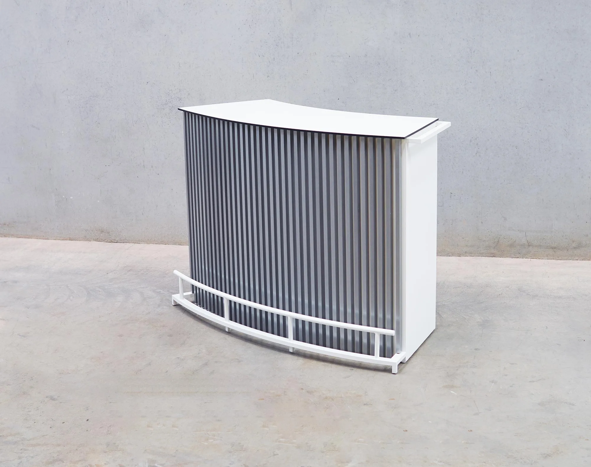 Descubre nuestra barra de bar moderna, fabricada en aluminio de alta calidad y disponible en 8 colores vibrantes y 4 acabados de tapa HPL. Con unas dimensiones de 150 cm de ancho x 65 cm de fondo y 111 cm de altura, es perfecta para cualquier espacio, ya sea en cocinas o salones. Su diseño combina elegancia y funcionalidad, incluyendo un almacenamiento integrado para botellas, copas o utensilios, y un reposapiés que añade comodidad a tus momentos de relax.