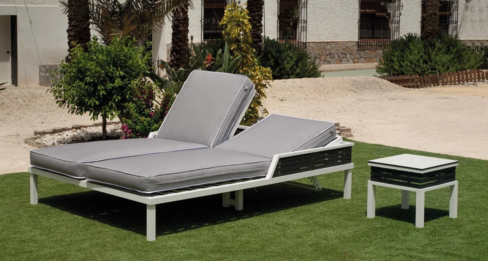 ¡Haz que tu jardín se vea moderno con nuestra cama doble de jardín de aluminio bicolor con respaldo reclinable! Esta hermosa tumbona doble de exterior está diseñada para que puedas disfrutar del aire libre con estilo y comodidad. Elaborada con aluminio de alta calidad y la mejor tapicería para exteriores Dralón Lux, esta cama doble es resistente a la intemperie y fácil de limpiar. Además, su respaldo reclinable te permite ajustar la inclinación para que puedas encontrar la posición perfecta para relajarte.