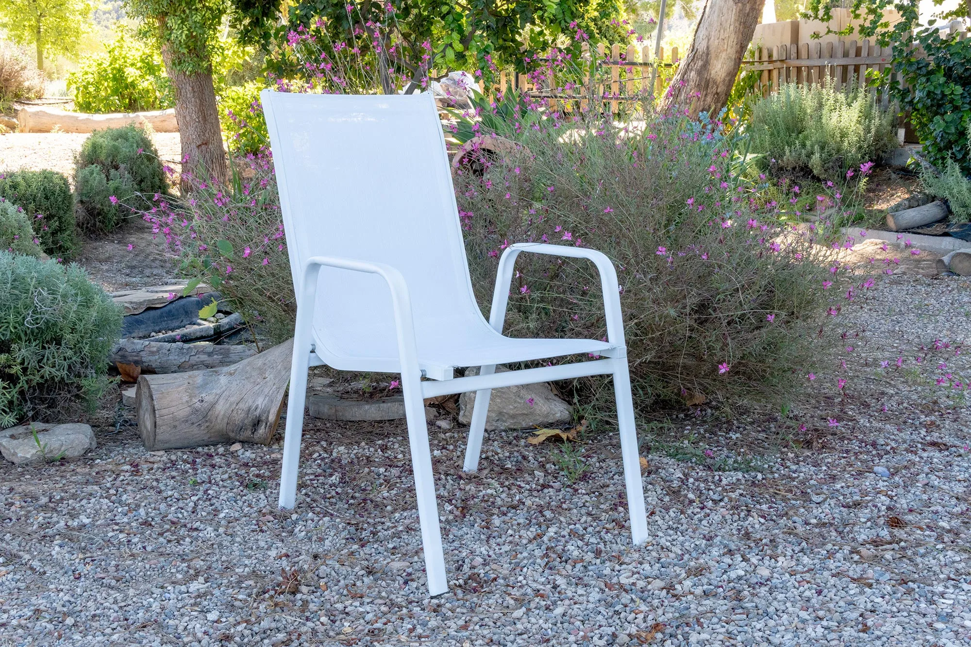 Set de jardín apilable, fabricado en aluminio, resistente a la intemperie y textilene de alta calidad