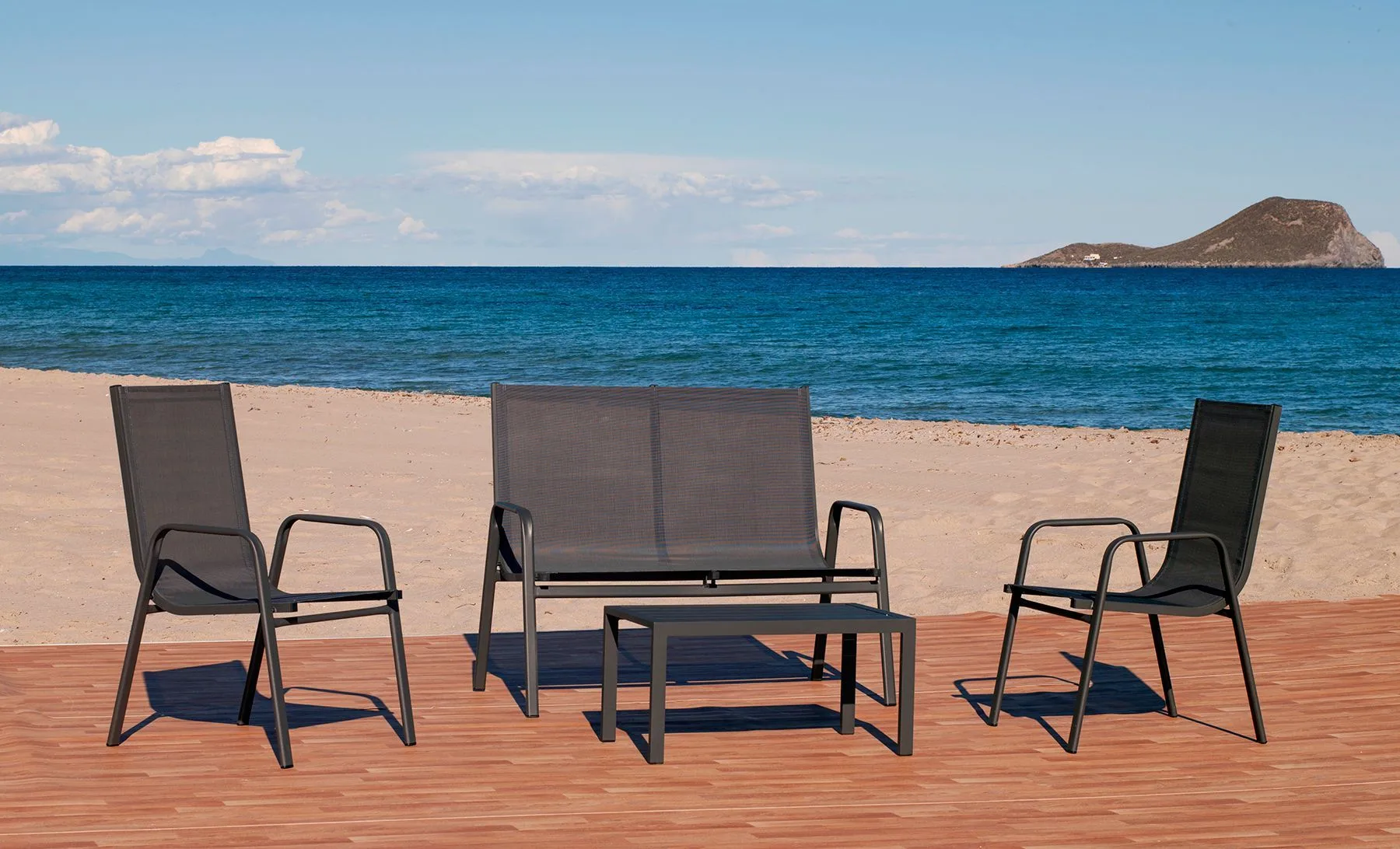 Personaliza tu espacio eligiendo entre una variedad de colores tanto para el aluminio como para el textilene. No requiere montaje. Respaldamos la calidad de nuestro producto con una garantía de 3 años contra defectos de fabricación. Transforma tu espacio exterior con este set de terraza económico y versátil.