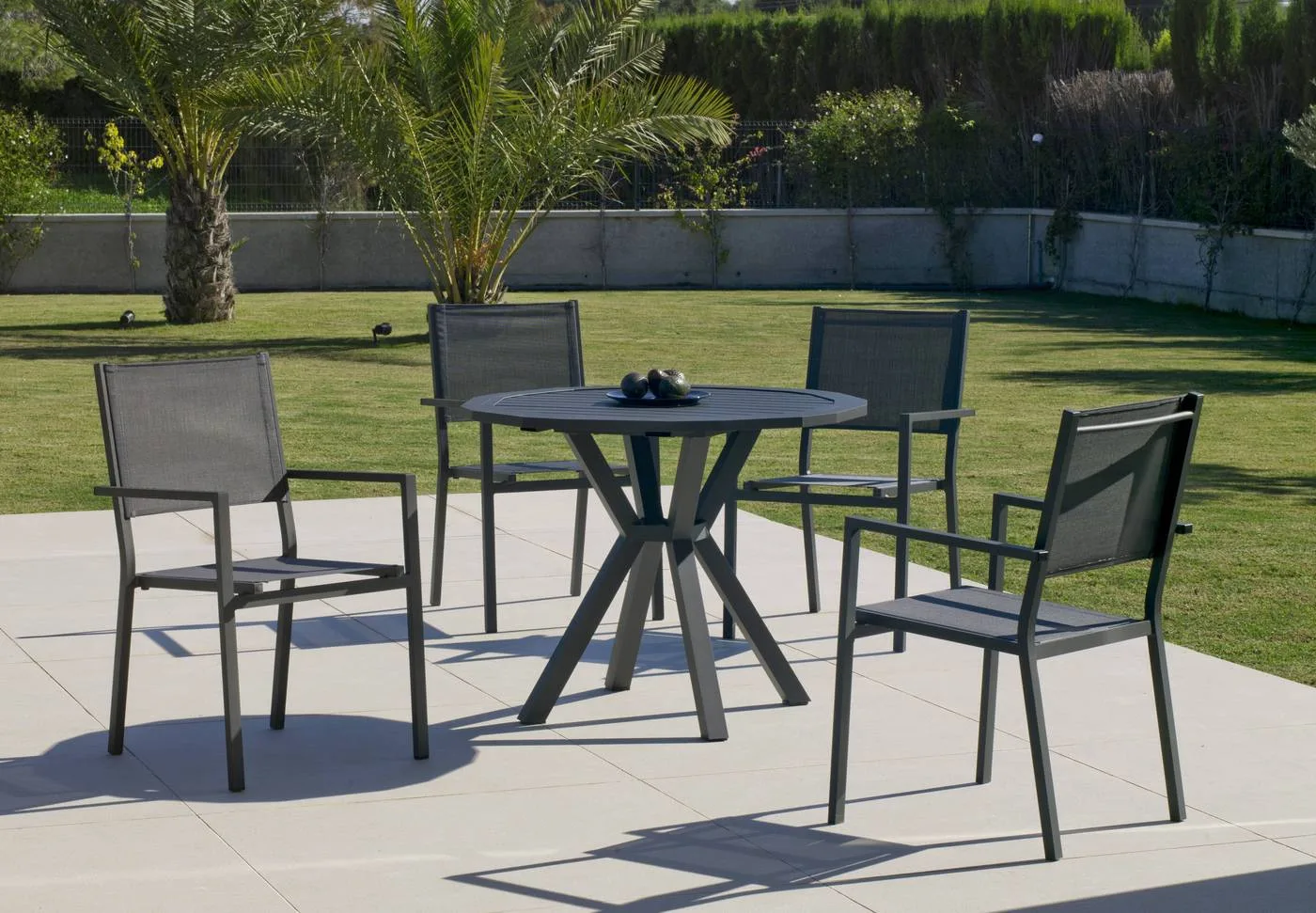 Este conjunto de jardín que te presentamos es una auténtica joya de diseño y comodidad, que invita a disfrutar de largas tardes al aire libre en la más exquisita elegancia. Este conjunto está compuesto por una mesa de aluminio con una forma hexagonal única, que añade un toque de sofisticación a cualquier espacio exterior y 4 sillas.