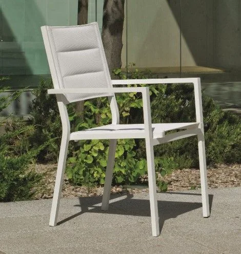 6 Sillas modelo Milos con asiento y respaldo de textilene acolchado. Dimensiones (Ancho-Fondo-Alto): 55 x 50 x 91 cm.
