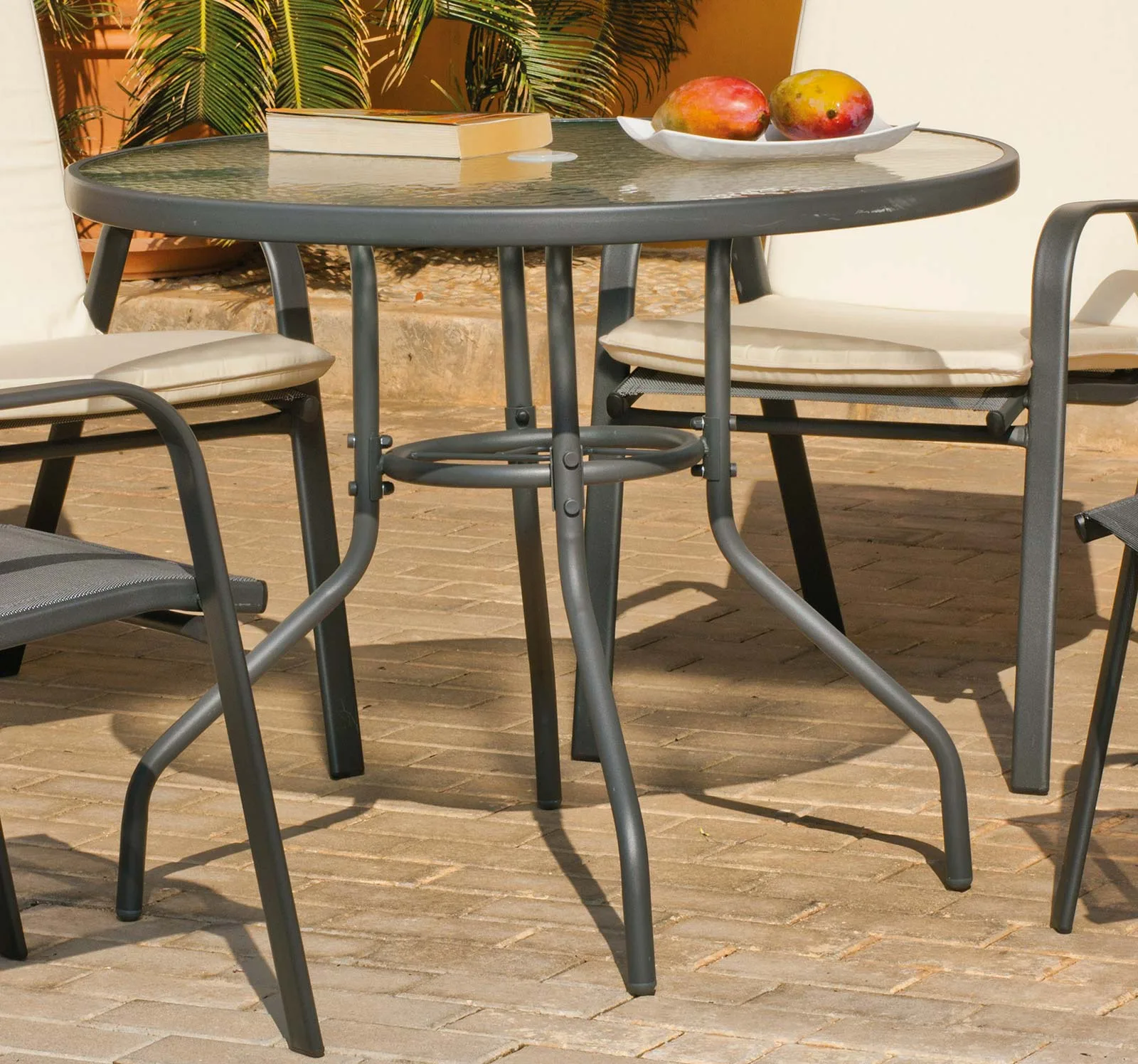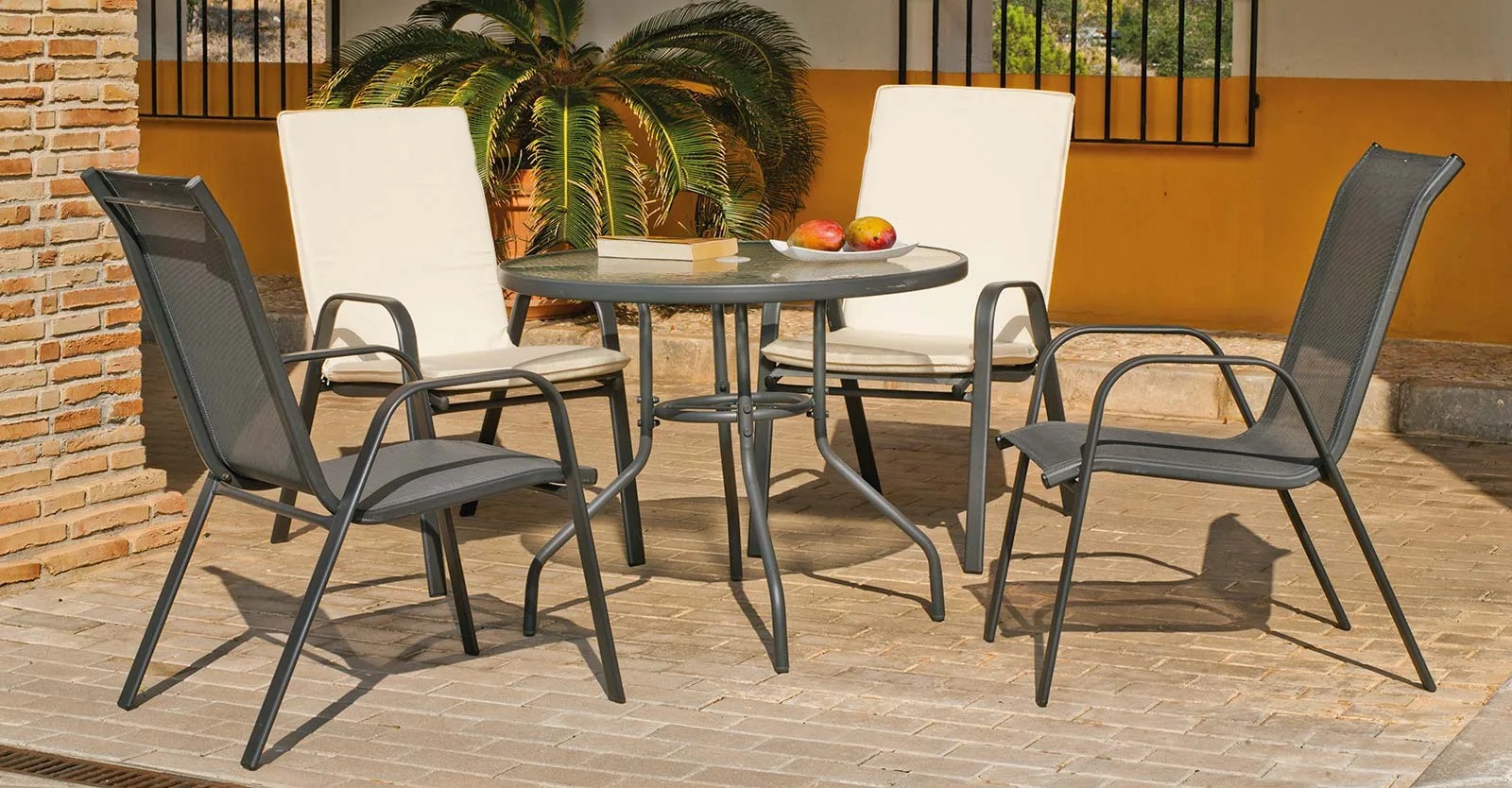 Descubre nuestro conjunto de mesa redonda con tapa de cristal y 4 sillas fabricadas en acero color gris antracita. Su diseño moderno, durabilidad garantizada y comodidad excepcional lo convierten en la elección perfecta para tu comedor o terraza. ¡Conoce más sobre este conjunto elegante y versátil!