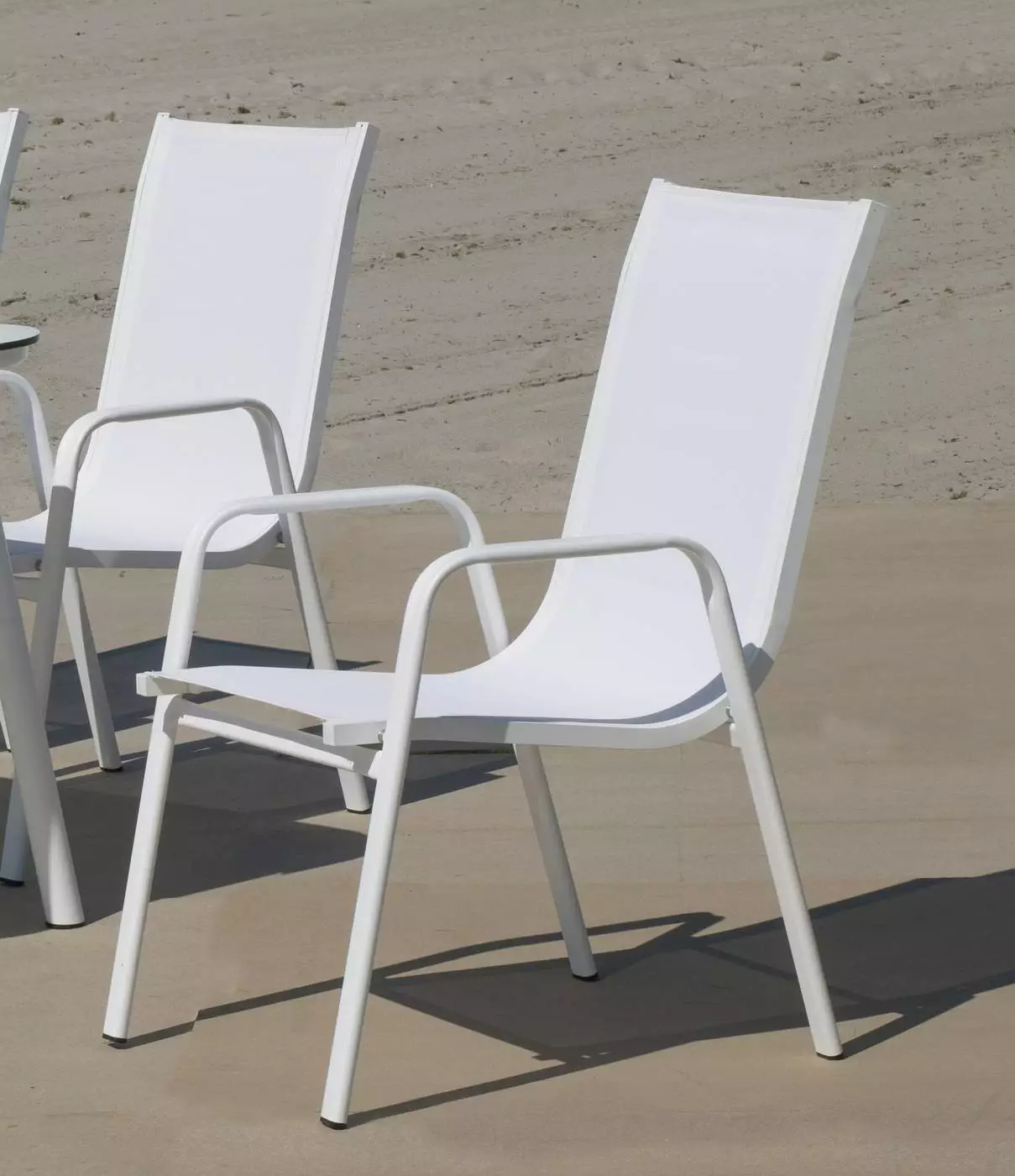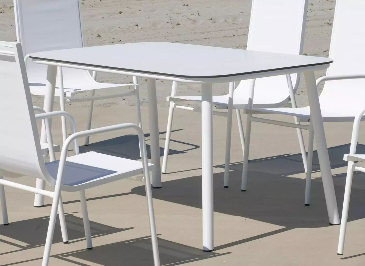 ¿Buscas un conjunto de comedor para terraza que sea cómodo y económico? ¡Tenemos justo lo que necesitas! Nuestra mesa con sillas para exterior del modelo Avalon están confeccionadas con en textilen de máxima cálida . Además, este conjunto de comedor de jardín blanco está fabricado en aluminio para darte toda la seguridad de poder dejarlo a la intemperie.Este comedor de exterior blanco está pensado y diseñado para brindarte la máxima comodidad. La mesa está terminada con un tablero de HPL para que puedas dejarlo a la intemperie sin preocuparte de nada. De esta forma puedes tener un comedor de jardín de 4 sillas lo suficientemente amplio para acomodar a todos tus invitados y proporcionar un espacio generoso para tus momentos de ocio. Nos gusta recordarte que también puedes usarlo como comedor de jardín de 6 sillas para reuniones más grandes.Este conjunto de mesa y sillas para jardín de aluminio, está compuesto por: