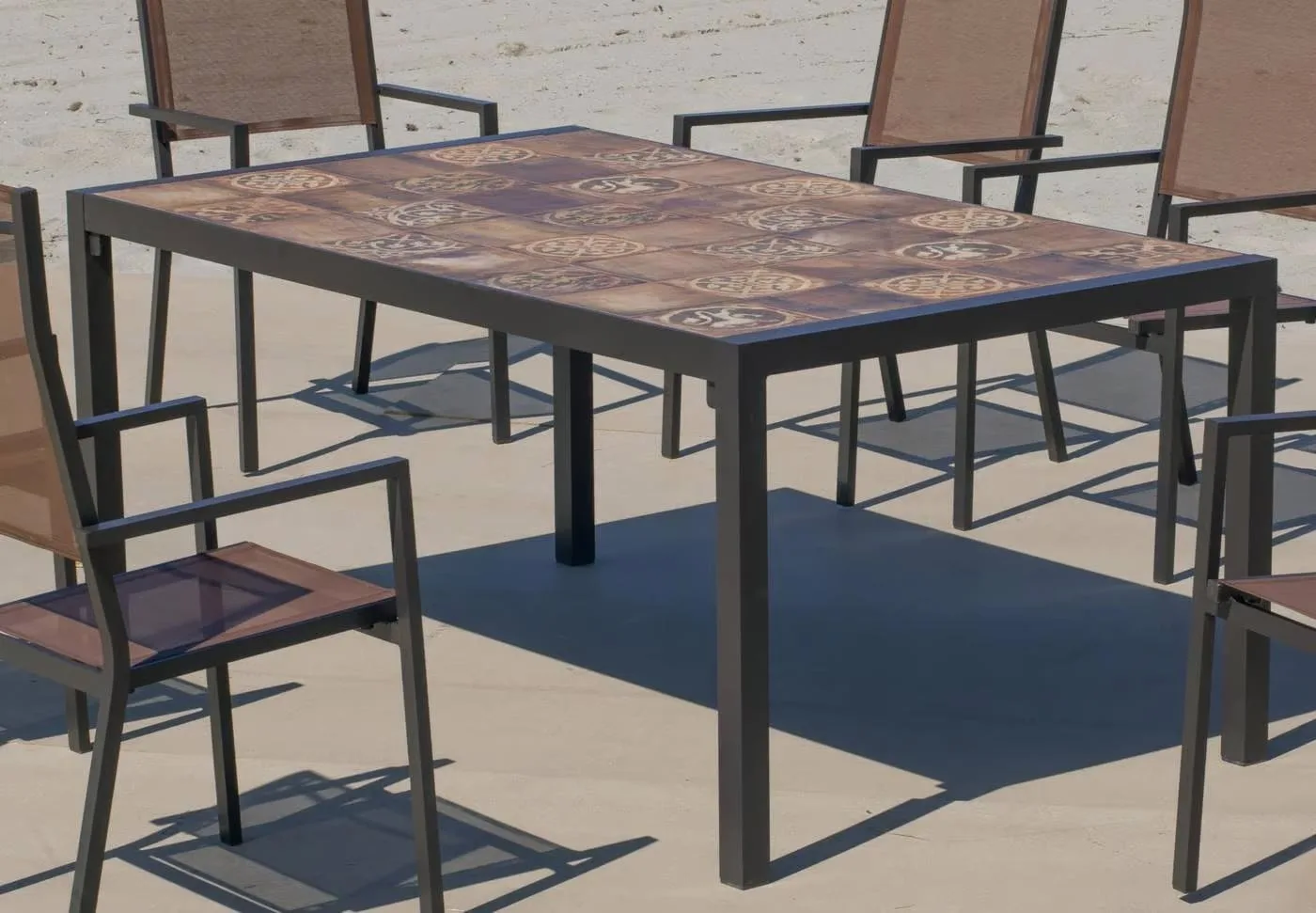 Elige aquí abajo el color de la estructura de las sillas y mesa y, después, el color del textilene de las sillas