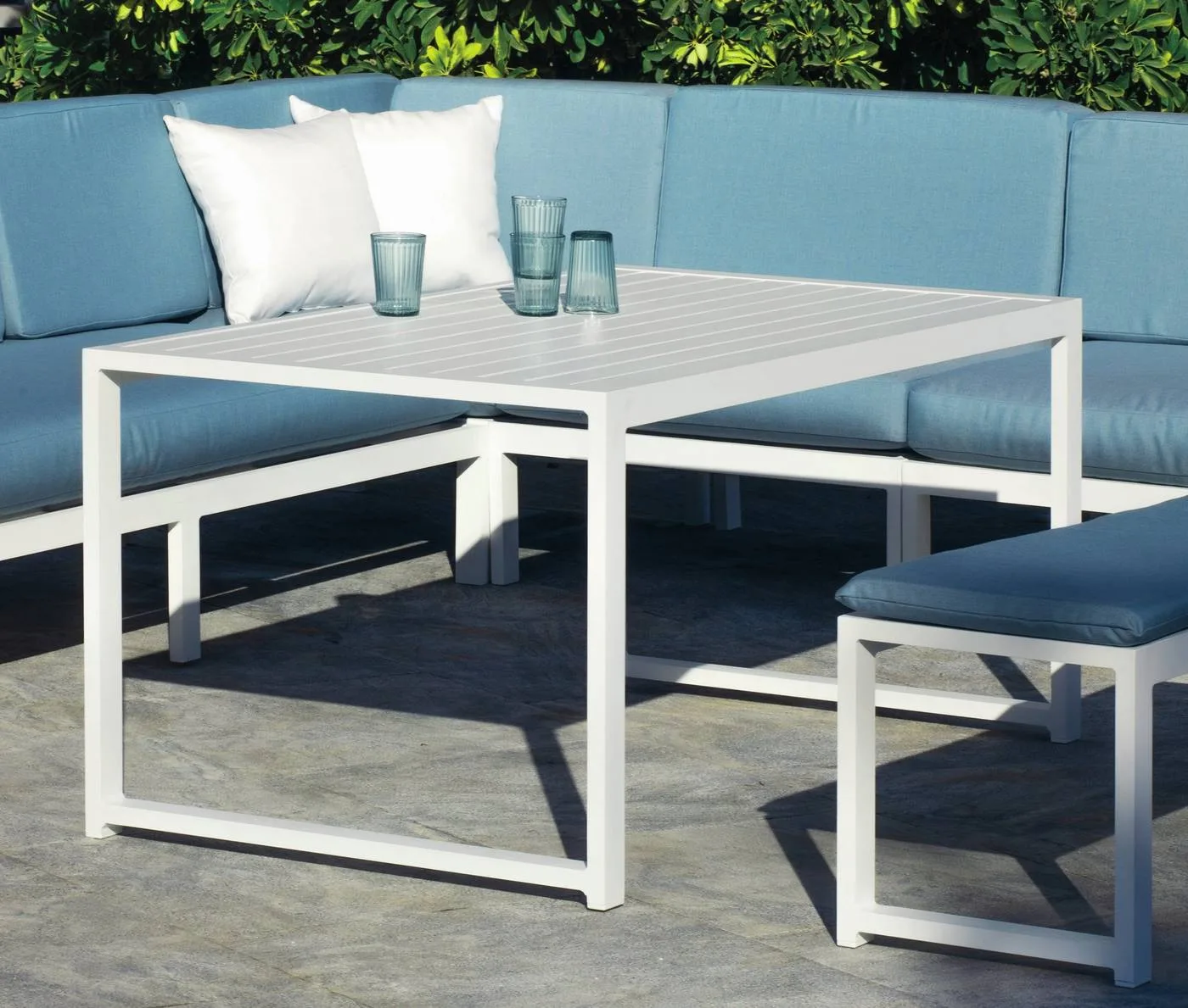 Este conjunto de rinconera está diseñado para soportar los rigores del clima exterior. El aluminio liviano y resistente a la corrosión, junto con el tejido Dralón Lux repelente al agua, lo convierten en una opción duradera para su patio o jardín. Disfruta de su comodidad sin temor a la lluvia, el sol o la humedad.