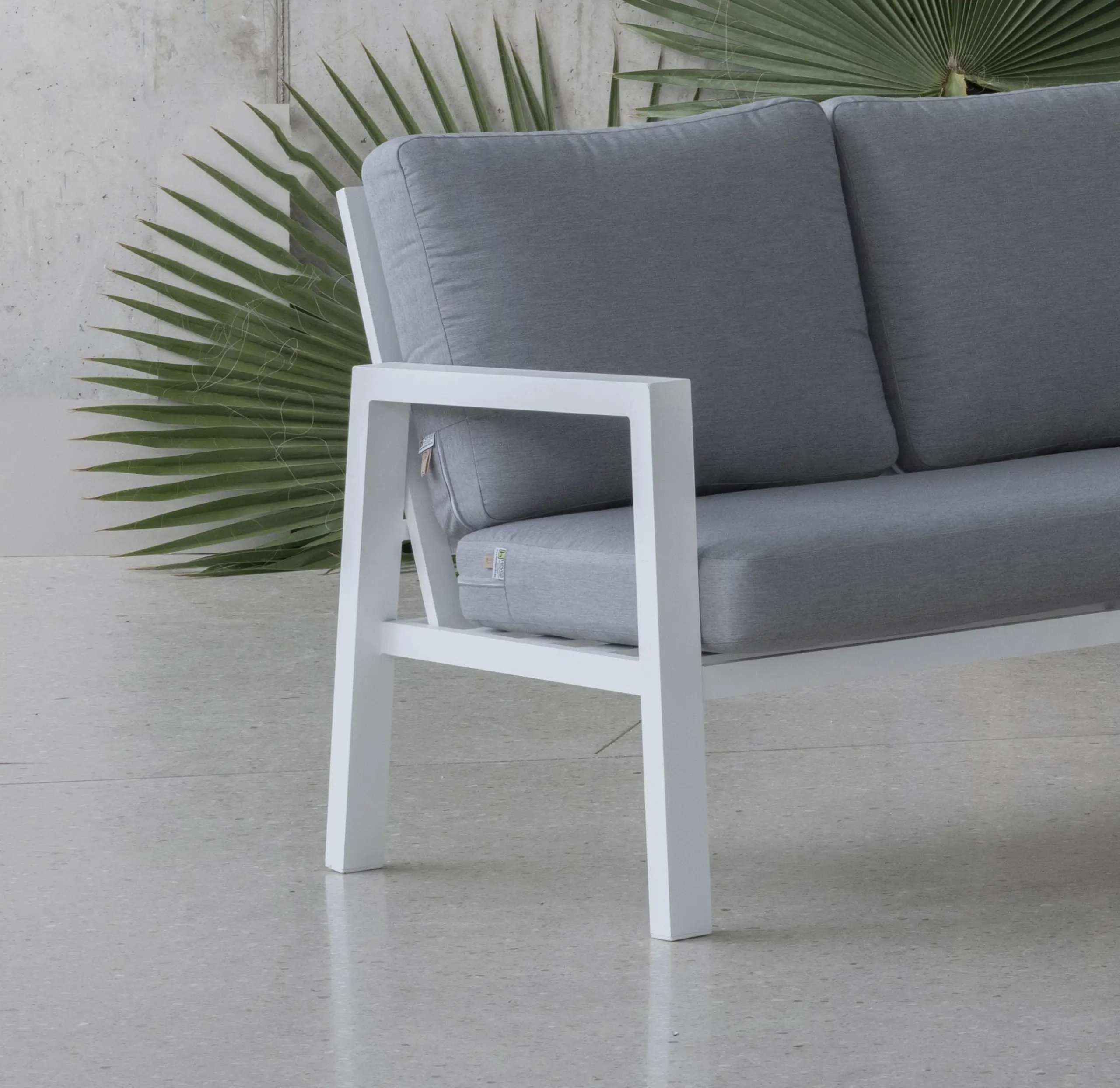 Este conjunto destaca por el uso de materiales de alta gama, seleccionados para ofrecer el máximo confort y durabilidad. Los cojines desenfundables están confeccionados en tejido repelente al agua y anti rayos UV de la reconocida gama Dralón, lo que asegura una protección superior frente a las inclemencias del tiempo y una sensación de suavidad premium al tacto. Además, existe la opción de fabricar los cojines en gamas superiores, adaptándose a los gustos más exigentes.La estructura de aluminio, completamente soldada, elimina puntos de debilidad y aporta una estética minimalista y moderna. Este material no solo es ligero, sino también resistente a la corrosión y a la pérdida de color, lo que lo convierte en la opción ideal para quienes buscan muebles de exterior de alta calidad y bajo mantenimiento.