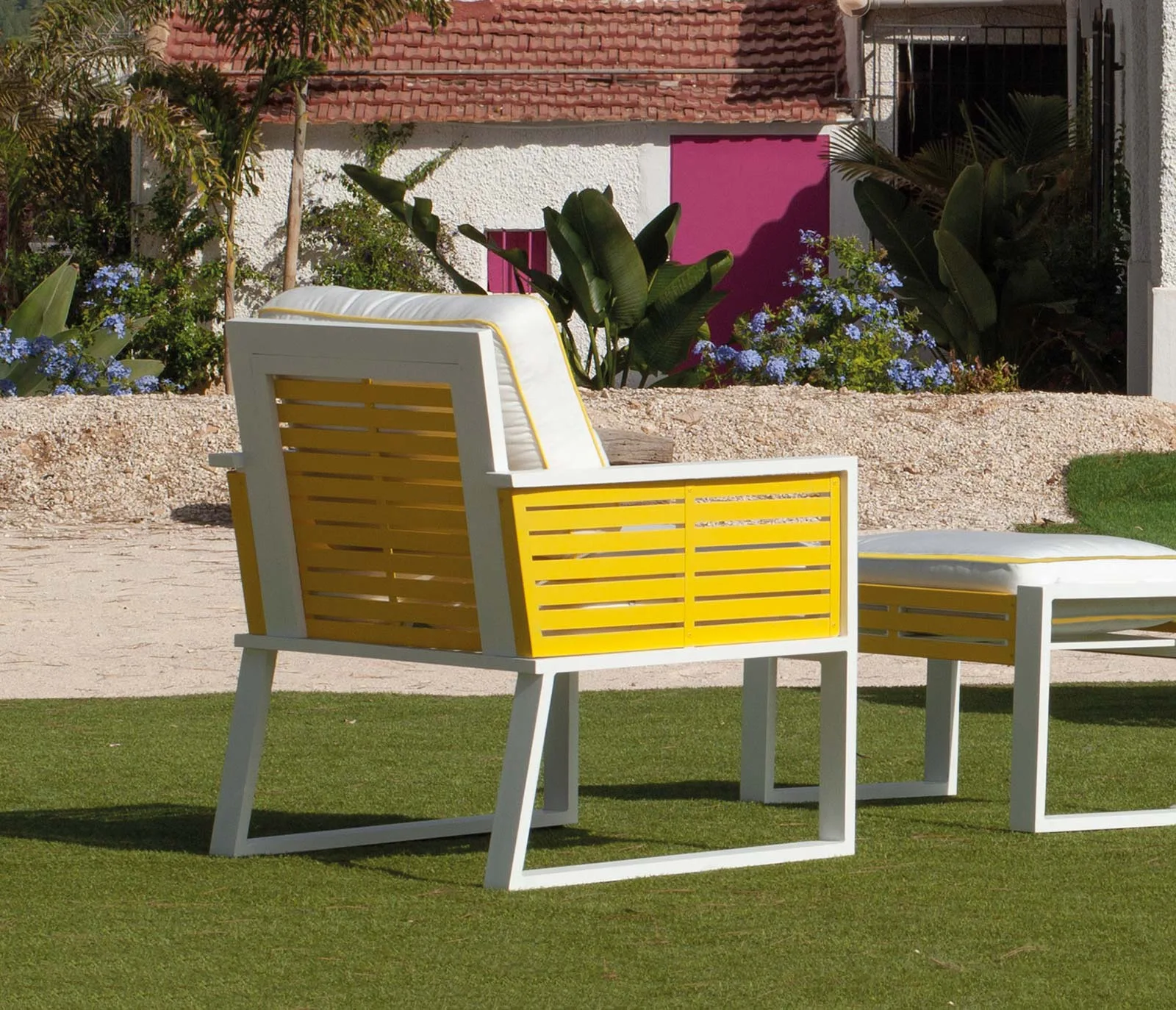 El material de aluminio y las fundas de los sofás personalizadas son de excelente calidad.