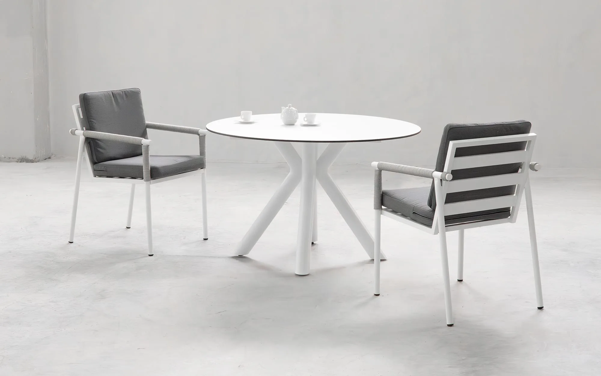 Este exclusivo sillón redondo combina aluminio resistente y cuerda trenzada artesanal en un diseño versátil para interiores y exteriores. Disponible en 6 colores modernos y 3 acabados de cuerda, su estructura ligera y antióxido se adapta a terrazas, jardines o salones minimalistas. La forma circular fomenta la conversación, creando ambientes acogedores para reuniones íntimas.