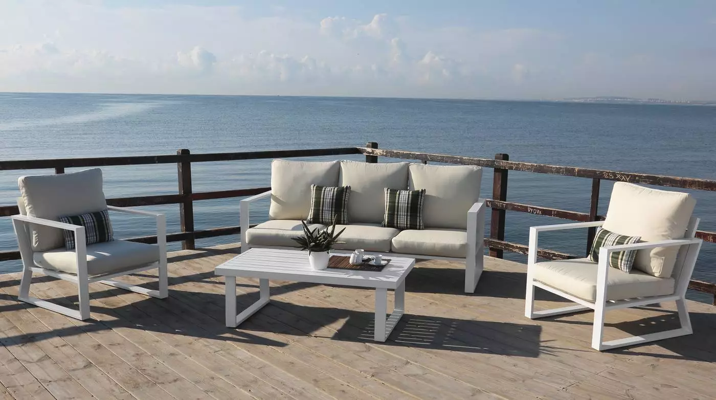 El material de aluminio y las fundas de los sofás personalizadas son de excelente calidad.