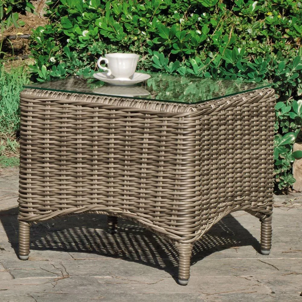 Con nuestra mesa auxiliar de ratán cuadrada modelo Borsalino, añadirás un toque clásico y distinto que no pasará desapercibido a la decoración de tu jardín o terraza.En la fabricación de esta mesa auxiliar se han utilizado materias primas de la mejor calidad, que la hacen muy resistente y duradera. Con una estructura de acero con recubrimiento en polvo cubierto con ratán sintético de alta calidad, se caracteriza por su resistencia y robustez y su fácil limpieza. Incluye tapa de cristal templado de seguridad de 5 mm. transparente, que se mantiene fijo gracias a cuatro ventosas.Medidas