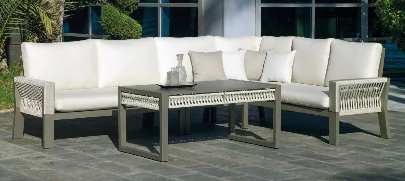 Acabo de recibir mi conjunto de jardín modelo Toscana 8 y no puedo estar más encantada con él. La calidad de los materiales es inmejorable, la cojineria es súper confortable, en un gris precioso. Repelen el agua, por lo que si te cae algún líquido, no tienes que preocuparte, puedes limpiarlo fácilmente con un paño.