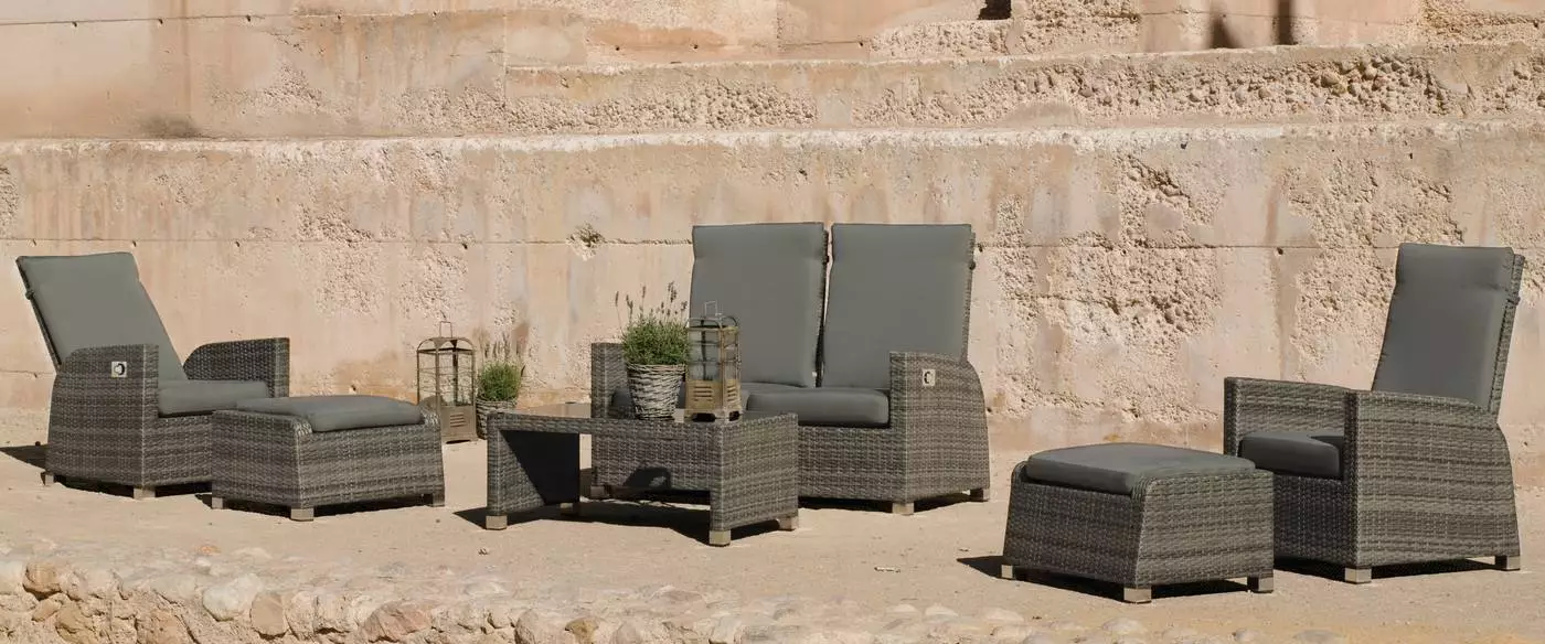 Acabo de recibir mi conjunto de jardín modelo Toscana 8 y no puedo estar más encantada con él. La calidad de los materiales es inmejorable, la cojineria es súper confortable, en un gris precioso. Repelen el agua, por lo que si te cae algún líquido, no tienes que preocuparte, puedes limpiarlo fácilmente con un paño.