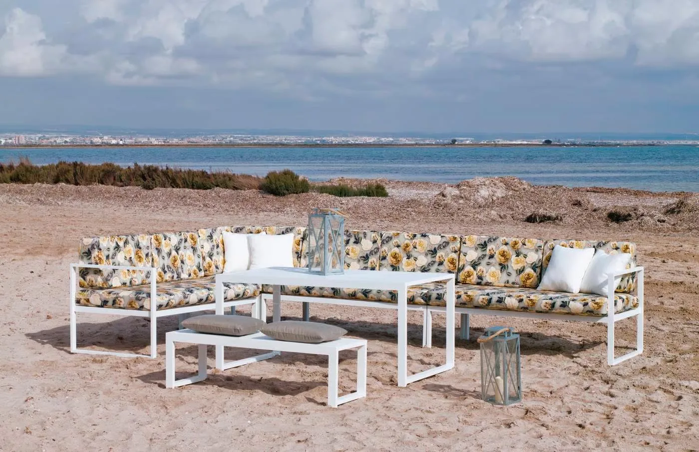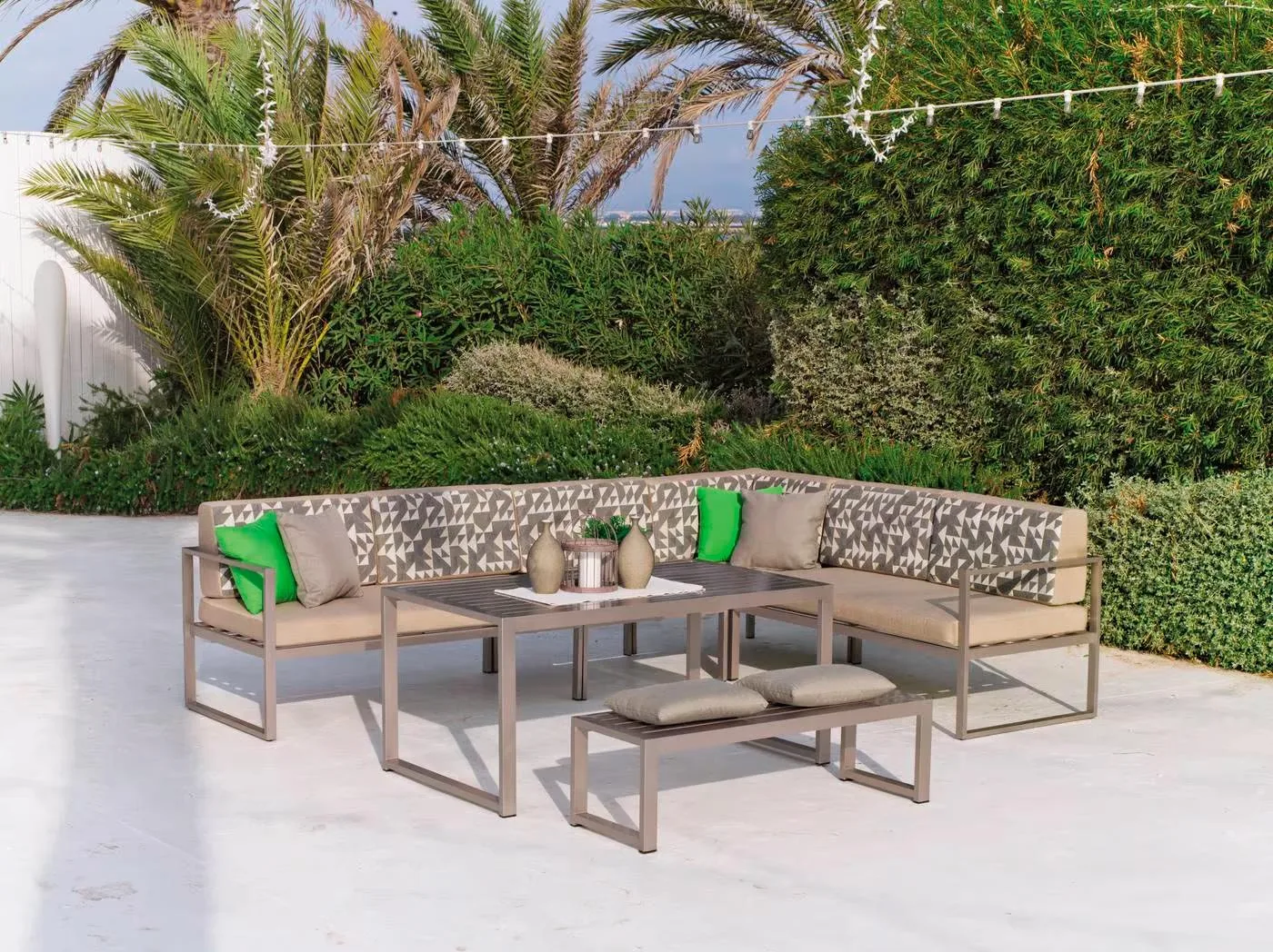 Mesa de centro alta para rinconera o sofá diseñada para exteriores, ideal para tu jardín, confeccionada en aluminio de alta calidad y disponible en cuatro colores para satisfacer tus preferencias estéticas. Esta mesa combina funcionalidad y estilo para brindarte un espacio cómodo y elegante donde compartir comidas y momentos especiales al aire libre.