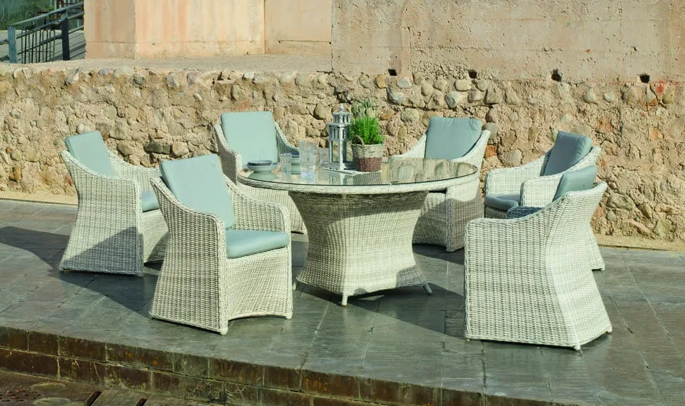 Acabo de recibir mi conjunto de jardín modelo Toscana 8 y no puedo estar más encantada con él. La calidad de los materiales es inmejorable, la cojineria es súper confortable, en un gris precioso. Repelen el agua, por lo que si te cae algún líquido, no tienes que preocuparte, puedes limpiarlo fácilmente con un paño.