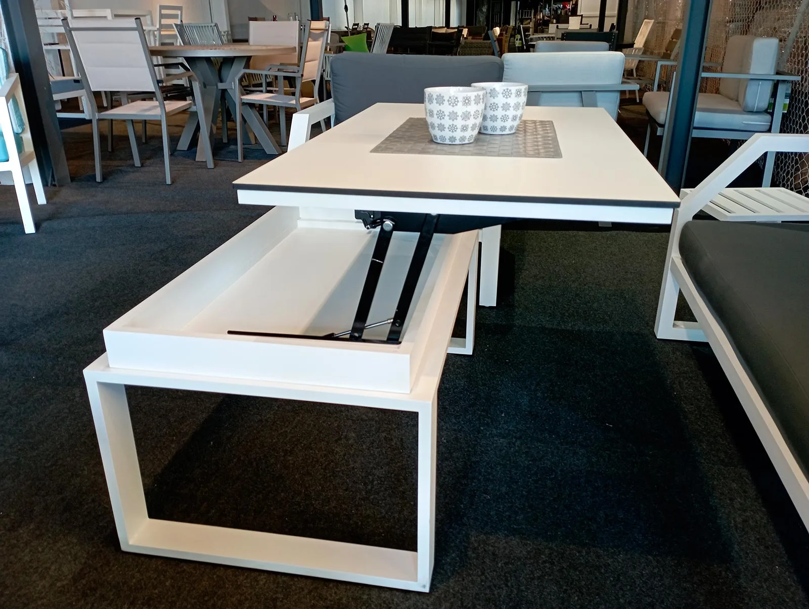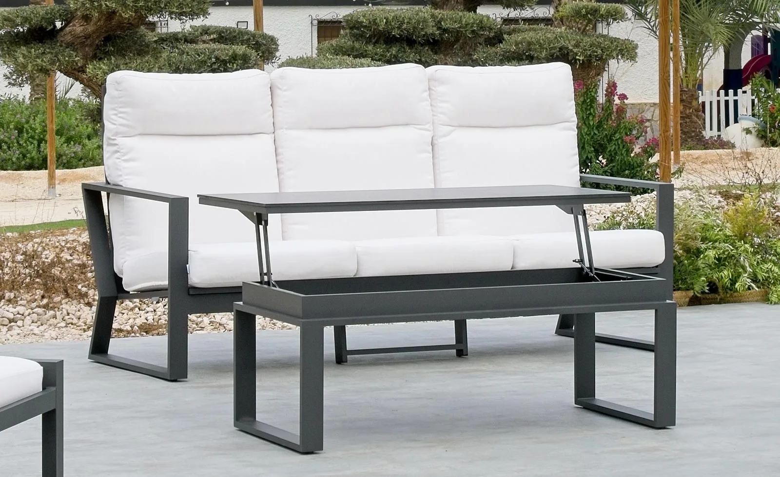 En nuestra misión por ofrecerte muebles que se adapten a tu estilo de vida, te invitamos a personalizar tu mesa elevable. Desde elegir el color del HPL hasta el acabado del aluminio en cuatro colores distintos, cada detalle está en tus manos. Imagina una mesa de exterior elevable que no solo se ajusta a tus necesidades prácticas, sino que también es una expresión de tu personalidad y estilo único. Con nuestra opción de personalización, tu mesa será verdaderamente tuya, una extensión de tu gusto y creatividad en el corazón de tu hogar.En resumen, nuestra mesa de terraza elevable de aluminio con tablero de HPL es mucho más que un mueble; es una declaración de estilo, una solución funcional y una inversión duradera. Descubre el equilibrio perfecto entre forma y función y transforma tu espacio en algo extraordinario. Entra en el mundo de la innovación y lleva a casa la mesa que siempre soñaste.