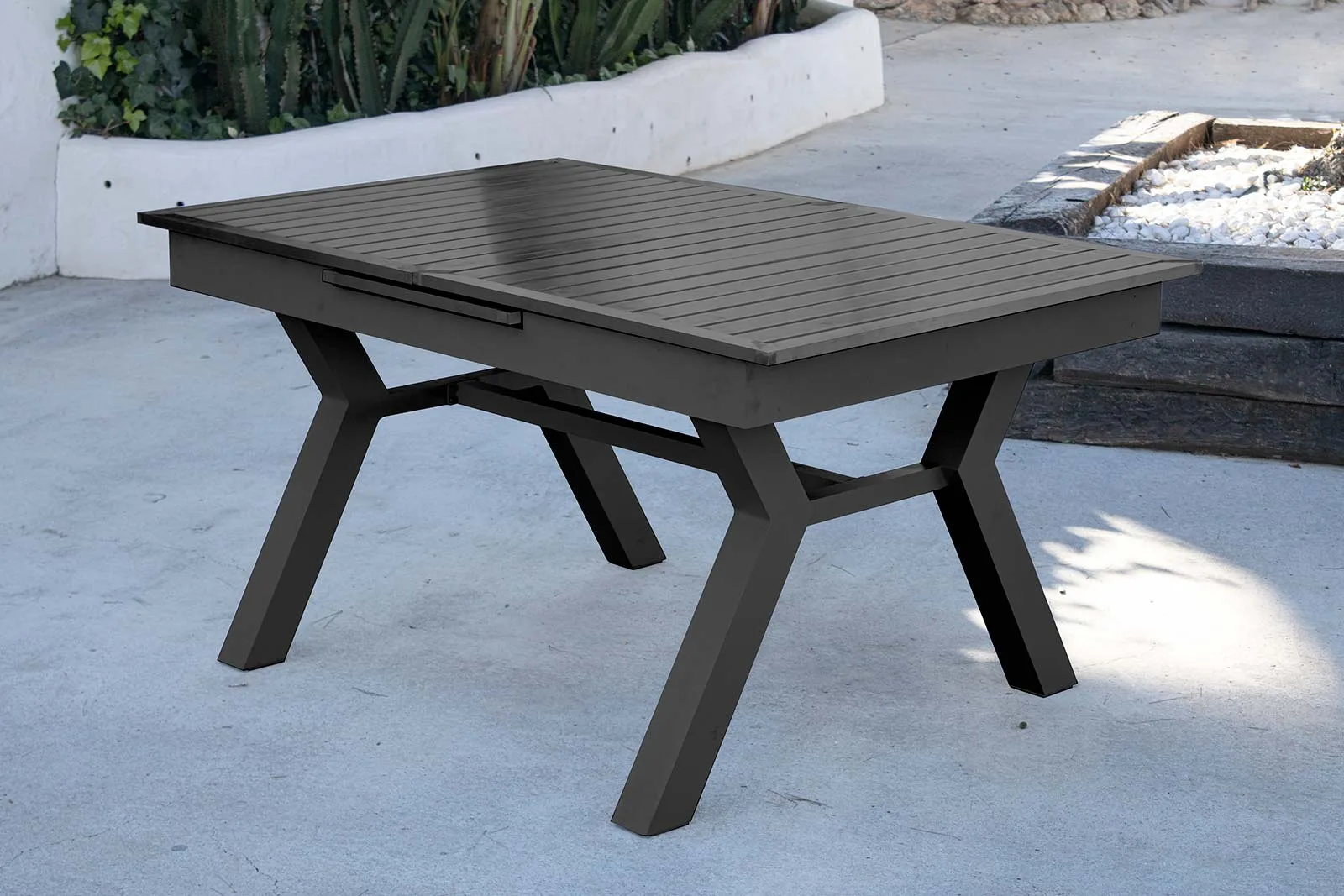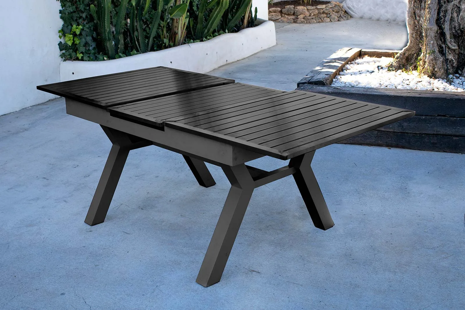 Esta mesa de exterior extensible está diseñada pensando en la funcionalidad y el estilo moderno. Fabricada con aluminio ligero resistente a la intemperie y disponible en 8 colores distintos, complementa cualquier espacio al aire libre. Su capacidad extensible para 6 u 8 comensales la convierte en una opción versátil tanto para cenas íntimas como reuniones animadas. Además, su diseño duradero incluye una garantía de 3 años contra defectos de fabricación, asegurando tranquilidad y calidad.