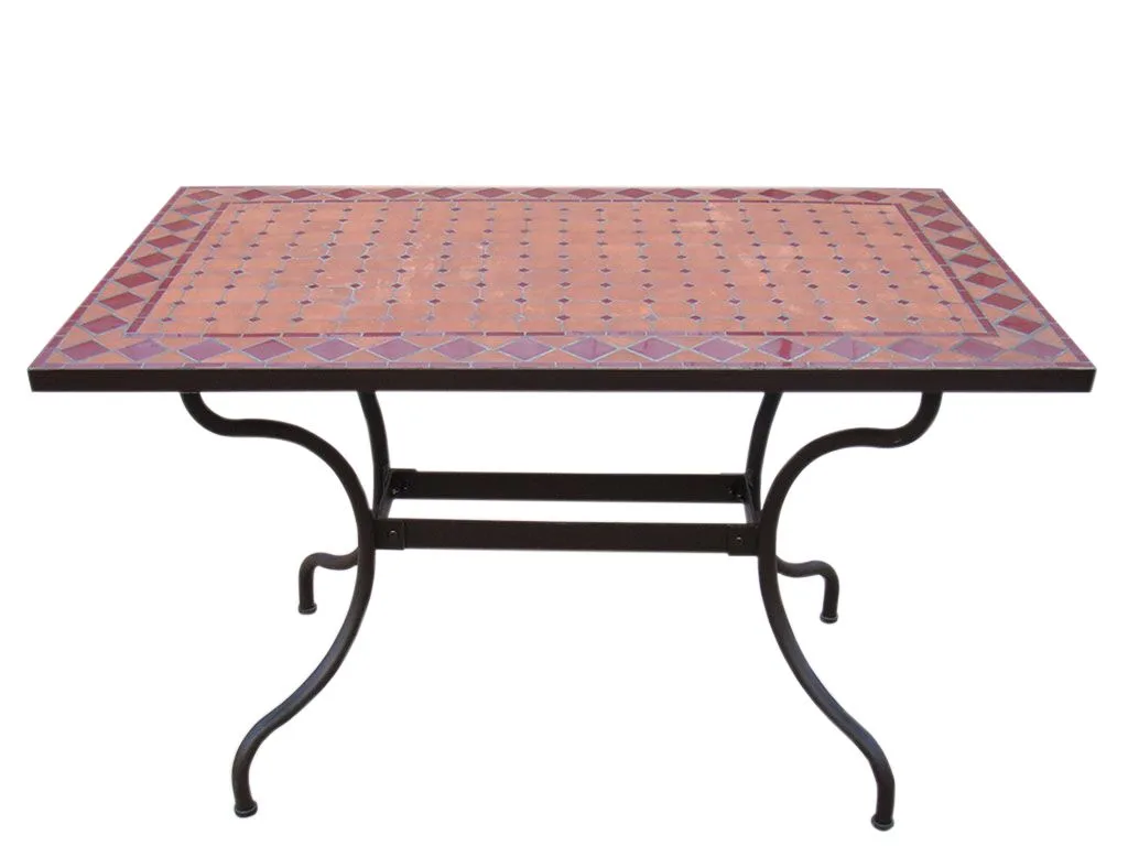 Mesa mosaico rectangular con tablero de 160×90 cm. Una mesa muy resistente fabricada para soportar las condiciones adversas como el sol y la lluvia, así como los rigores del uso diario, ideal para jardín o terraza.