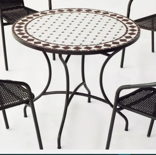 Os presentamos esta práctica mesa mosaico redonda Modelo Siena, con tablero circular mosaico de Ø 90 cm, ideal para terrazas de reducidas dimensiones.Esta mesa mosaico redonda creará un ambiente mediterráneo en tu hogar. Su patrón de mosaico hecho a mano es particularmente único. Tanto en el interior como en el exterior, gracias a su diseño hará que esta mesa de jardín sea un punto de atracción en tu casa.Gracias a su gran estabilidad, esta mesa no supondrá ningún problema, se caracteriza por su durabilidad y también es resistente a la intemperie, por lo que es ideal para un uso prolongado en el exterior.La estructura de esta mesa es de acero forjado, con menos porosidad y mayor resistencia que cualquier otro tipo de acero. El tablero de mosaico cerámico es resistente a la humedad y al calor.Dimensiones