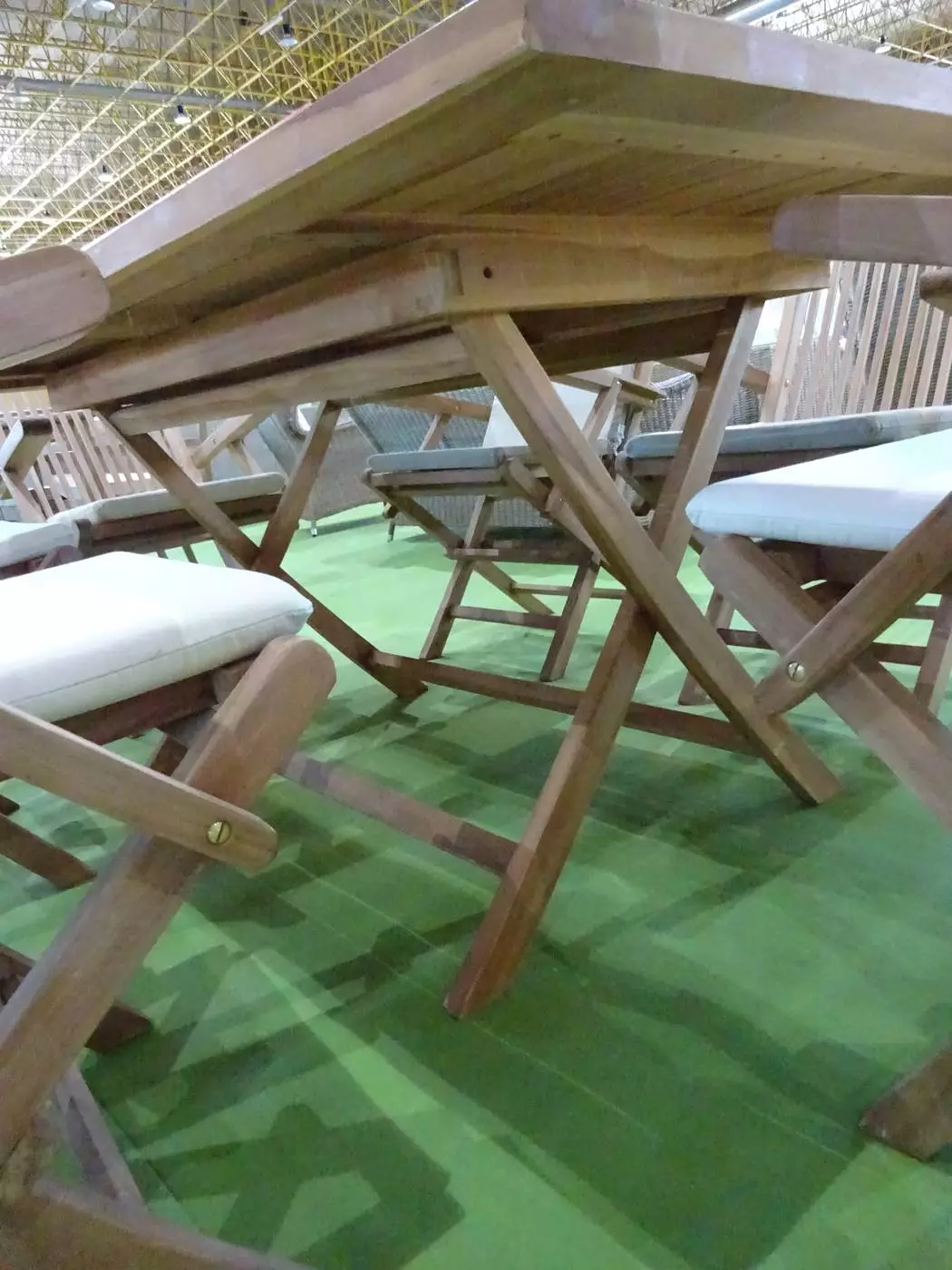 *Sillas no incluidas. El modelo que aparece en la foto es la tumbona Seroni, también fabricada en madera de teka.