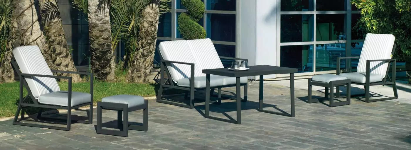Acabo de recibir mi conjunto de jardín modelo Toscana 8 y no puedo estar más encantada con él. La calidad de los materiales es inmejorable, la cojineria es súper confortable, en un gris precioso. Repelen el agua, por lo que si te cae algún líquido, no tienes que preocuparte, puedes limpiarlo fácilmente con un paño.