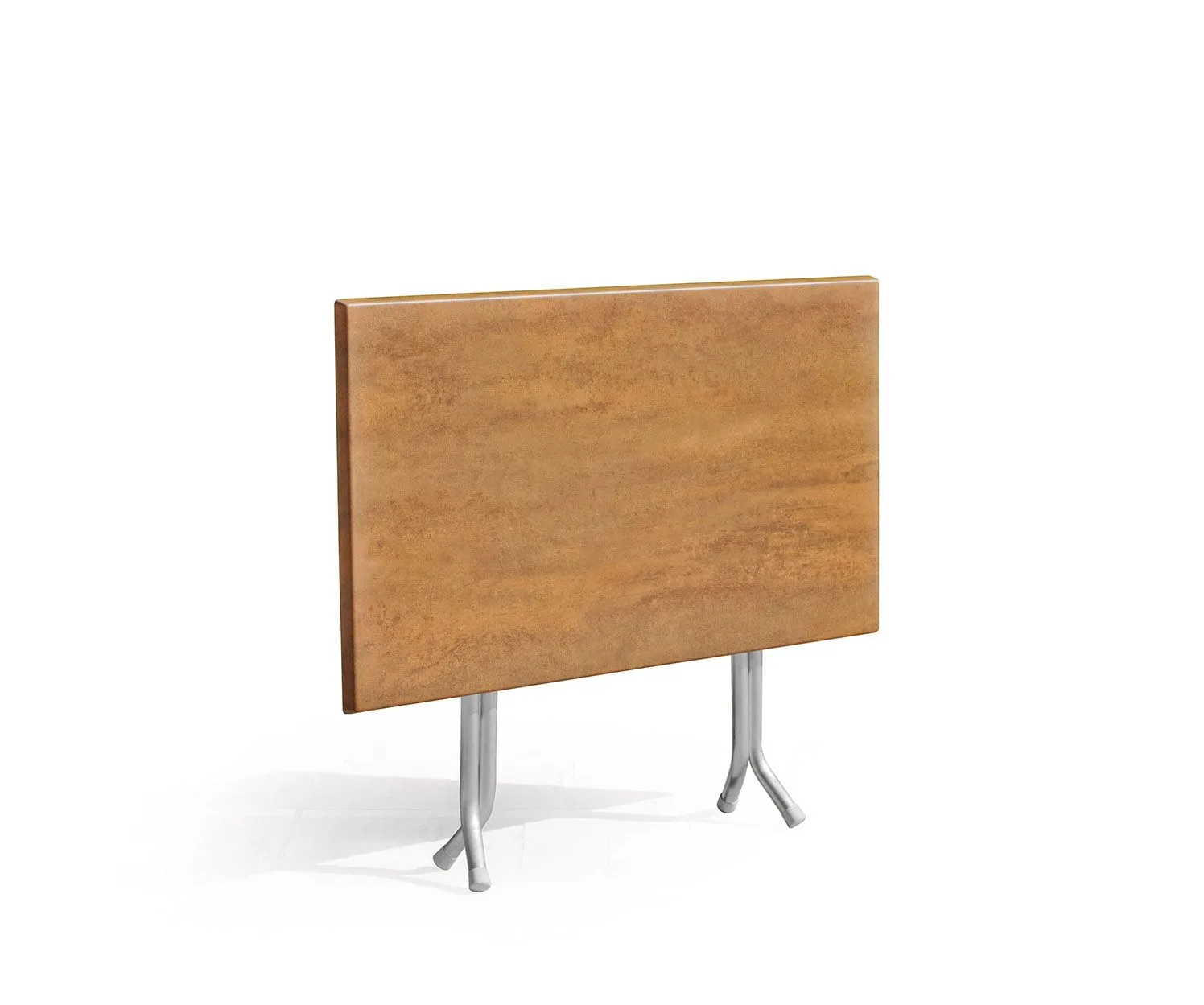 Nuestra mesa rectangular con pata plegable, fabricada con aluminio de alta calidad y tablero Werzalit de color marrón vintage, ofrece una durabilidad incomparable para soportar el uso diario y resistir los elementos exteriores. El aluminio es conocido por su resistencia a la corrosión, lo que garantiza que esta mesa mantenga su aspecto impecable durante años, incluso en condiciones climáticas adversas. Además, el tablero Werzalit es extremadamente resistente a los golpes, arañazos y manchas, lo que la convierte en la elección perfecta para áreas de alto tráfico.Si te ha gustado este práctico modelo de mesa plegable, te recomendamos que le eches un vistazo a nuestra otra mesa de las mismas características, pero con forma cuadrada.Medidas de la mesa exterior de 120×70