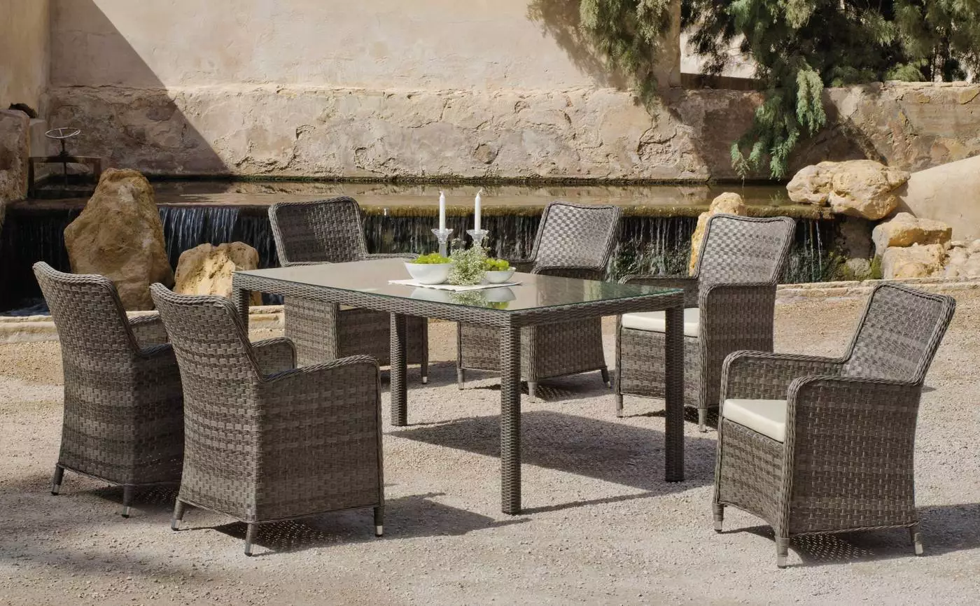 Acabo de recibir mi conjunto de jardín modelo Toscana 8 y no puedo estar más encantada con él. La calidad de los materiales es inmejorable, la cojineria es súper confortable, en un gris precioso. Repelen el agua, por lo que si te cae algún líquido, no tienes que preocuparte, puedes limpiarlo fácilmente con un paño.