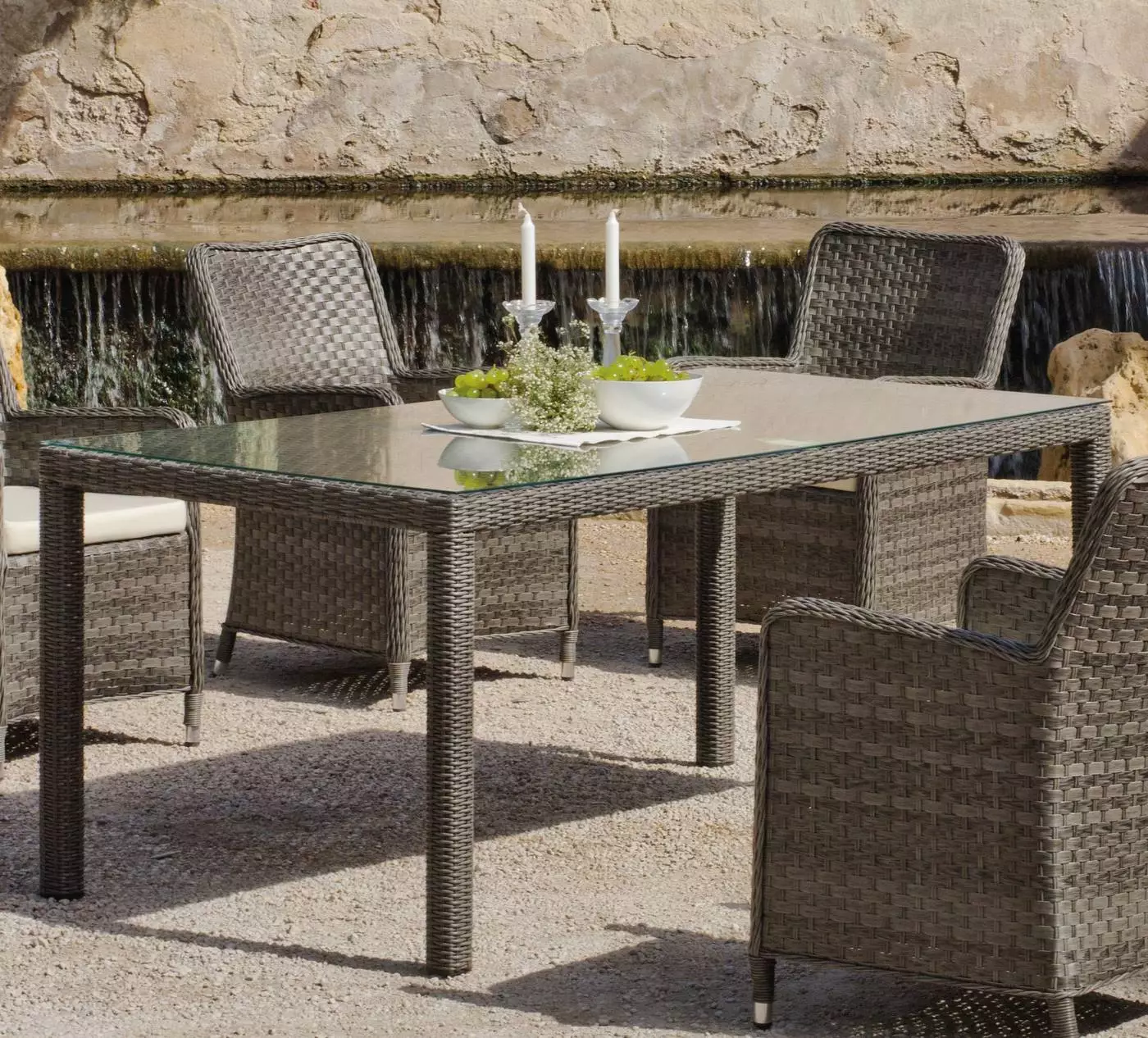 Con nuestra mesa rectangular de exterior en ratán gris modelo Samba añadirás a la decoración de tu jardín o terraza un toque clásico y distinto que no pasará desapercibido gracias a sus dimensiones: 180x90x75 cm.En la fabricación de esta mesa se han utilizado materias primas de la mejor calidad, que la hacen muy resistente y duradera. Con una estructura de aluminio recubierto con ratán sintético de alta calidad, se caracteriza por su resistencia y robustez y su fácil limpieza. Incluye tapa de cristal templado de seguridad de 5 mm. transparente, que se mantiene fijo gracias a cuatro ventosas.Medidas