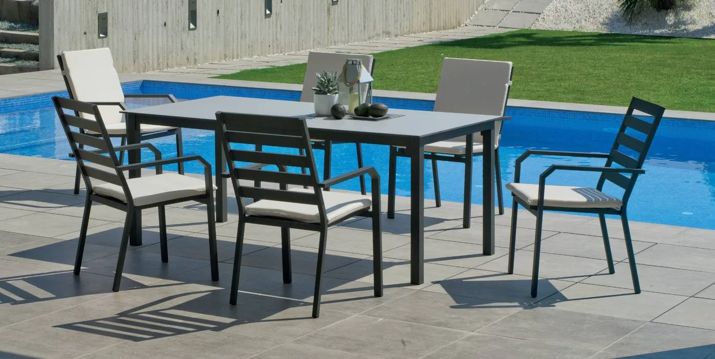 Descubre la perfecta combinación de funcionalidad y diseño en nuestra mesa grande de aluminio para terraza. Con estructura de aluminio resistente y una elegante tapa HPL, este mueble de aluminio para exterior es ideal para realzar cualquier espacio exterior. Duradera, resistente y con un estilo atemporal, es la elección perfecta para disfrutar al aire libre.