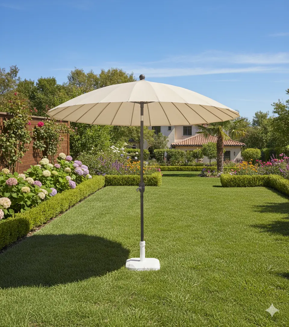 Crea un rincón de relax en tu jardín y hazte con este original parasol de estilo oriental.