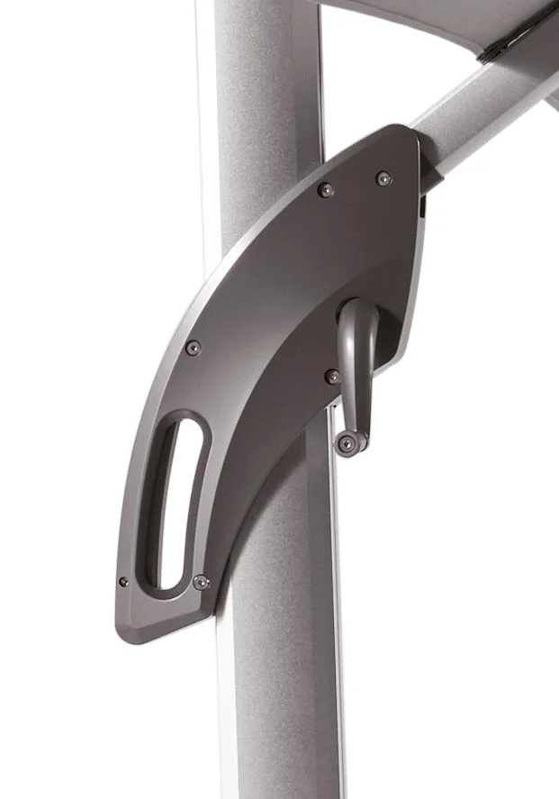 «description»: «Este parasol excéntrico 3×3 de aluminio con manivela combina funcionalidad y estilo para brindarte una experiencia al aire libre inigualable.»,