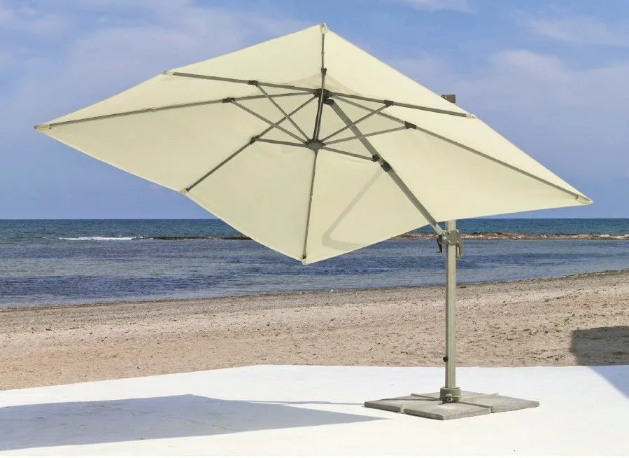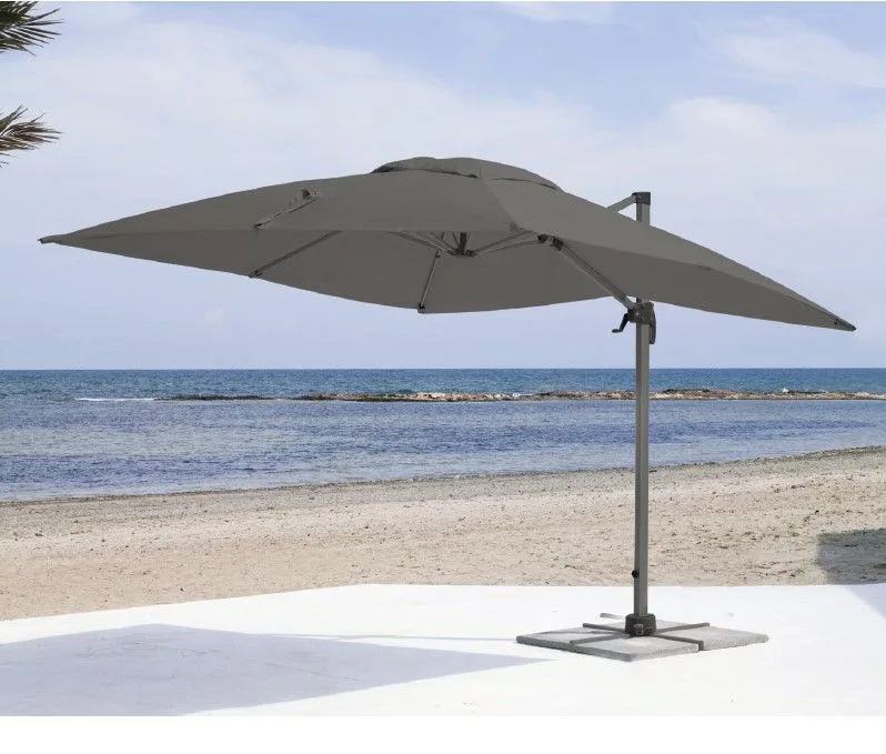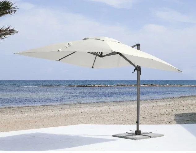 Descubre nuestro parasol excéntrico 3×3 de aluminio con base giratoria