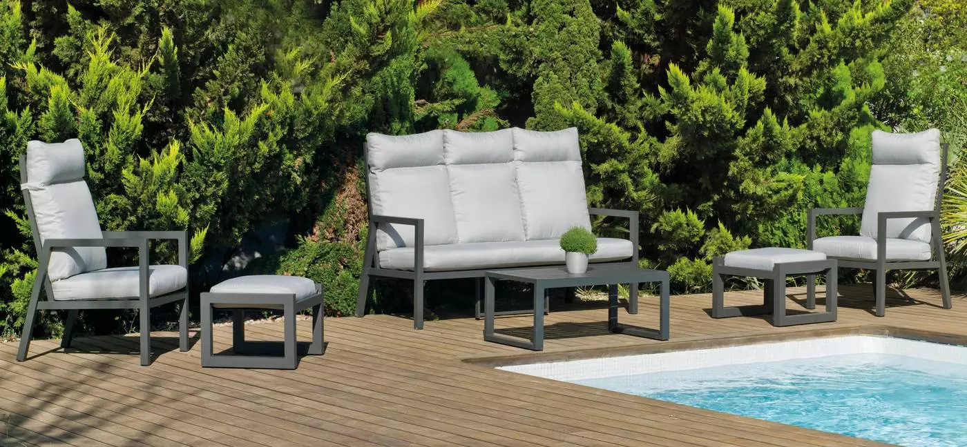 Acabo de recibir mi conjunto de jardín modelo Toscana 8 y no puedo estar más encantada con él. La calidad de los materiales es inmejorable, la cojineria es súper confortable, en un gris precioso. Repelen el agua, por lo que si te cae algún líquido, no tienes que preocuparte, puedes limpiarlo fácilmente con un paño.
