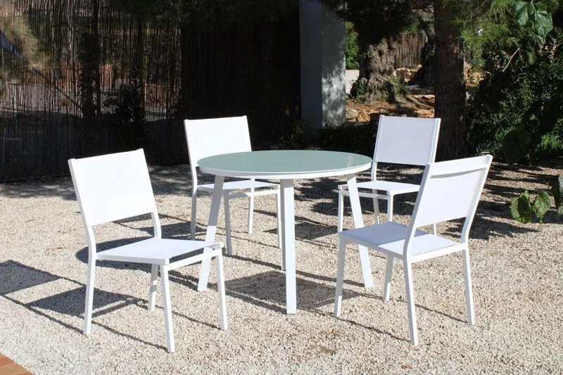 Con nuestra silla sin brazos de exterior disfrutarás de buenos momentos en tu jardín o terraza. Diseñada con materiales de alta calidad, nos encontramos ante una silla sin brazos para terraza fabricada en aluminio y textilen ,perfecta para soportar el clima adverso y el uso diario. Su diseño se adapta perfectamente al cuerpo, lo que la hace ideal para relajarse durante largas horas al aire libre.