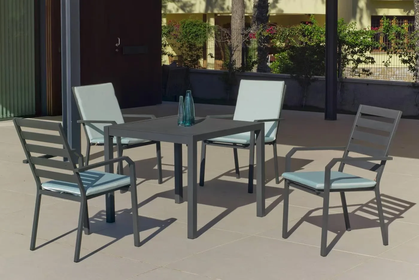 «description»: «Nuestra silla con brazos de aluminio para jardín combina diseño elegante y funcionalidad superior para tus espacios exteriores.»