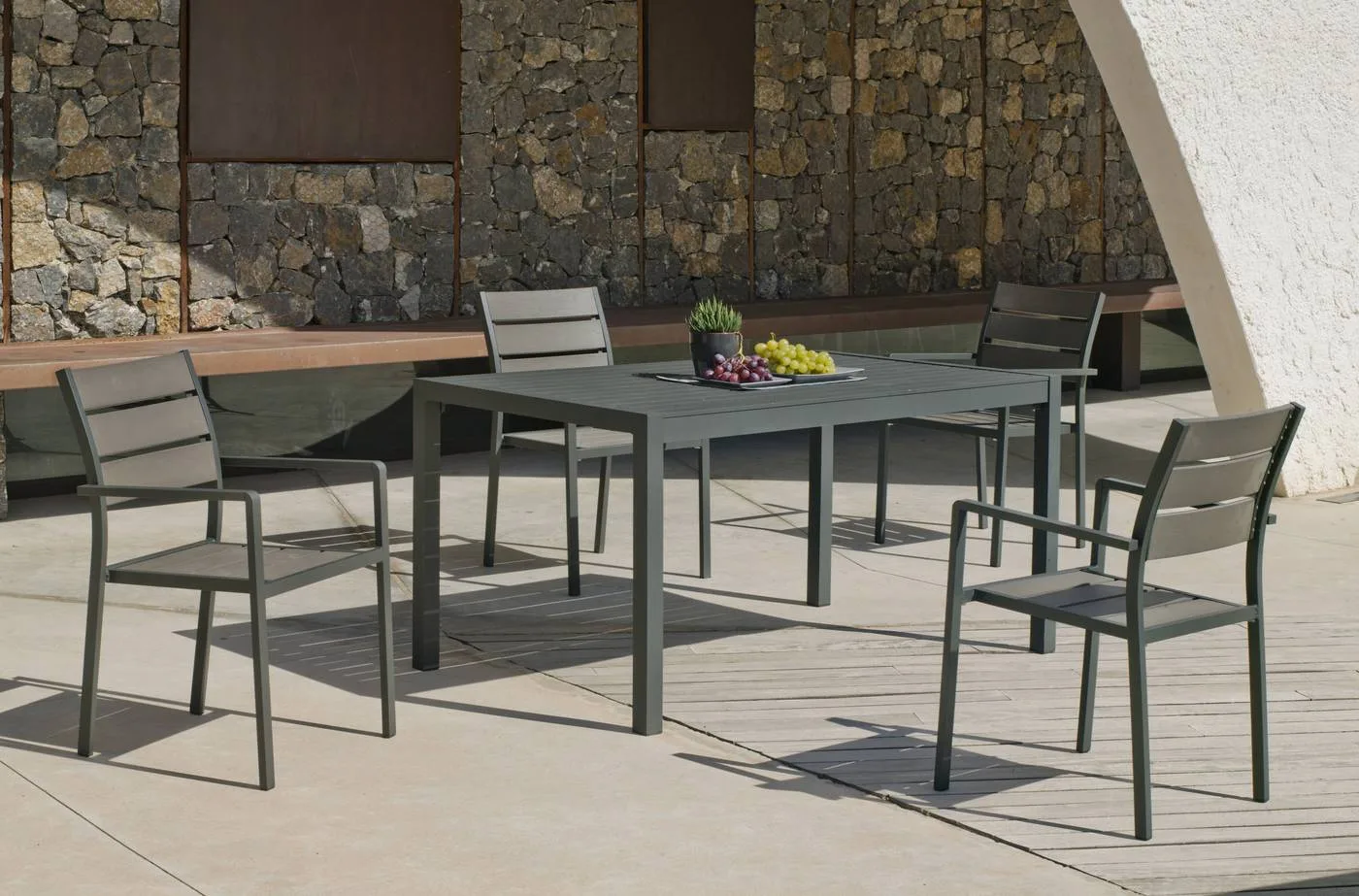 ¡Descubre nuestra silla con brazos de aluminio en color antracita con asientos y respaldo en poliwood! Esta elegante silla combina a la perfección diseño contemporáneo, resistencia y confort para que puedas disfrutar al máximo de tus momentos al aire libre.