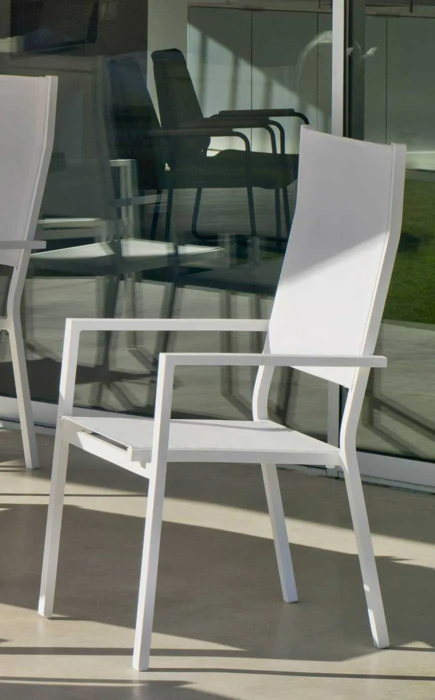Disfruta del sol y la brisa fresca en tu patio o jardín con nuestra silla de aluminio para exterior, modelo Janeiro. Esta silla de terraza con respaldo alto es la opción perfecta para aquellos que buscan comodidad y elegancia en su espacio al aire libre. Diseñada con materiales de alta calidad, como el aluminio y el textilene, que la convierten en un mueble resistente y duradero para soportar el clima adverso y el uso diario.Esta silla de aluminio para exterior será el complemento perfecto para nuestra mesa redonda extensible de aluminio Yerevan.Dimensiones de la silla de aluminio para jardín