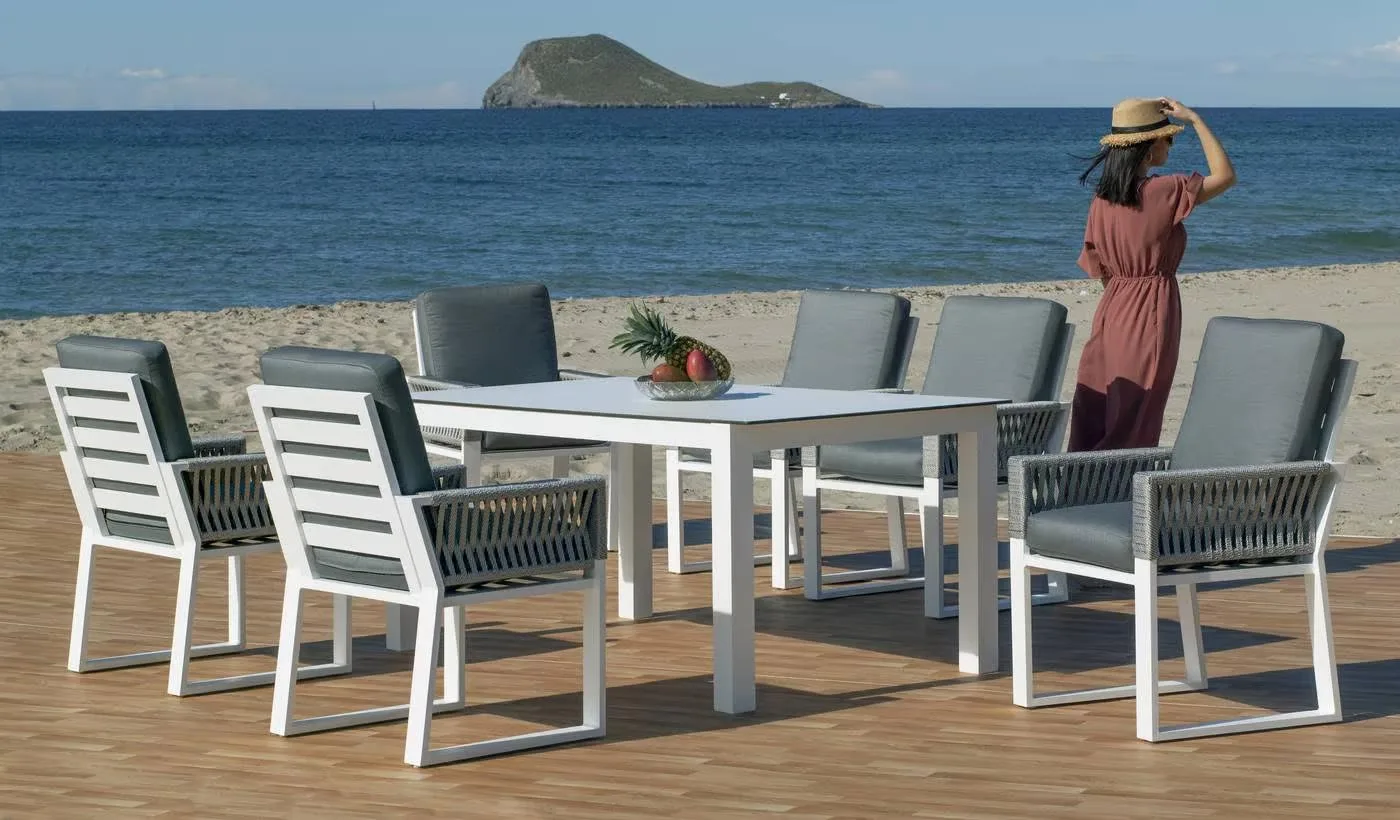 Si estás buscando renovar tu comedor al aire libre y buscas muebles que combinen calidad, estilo y resistencia, entonces tienes que ver nuestro sillón comedor de aluminio y cuerda trenzada.