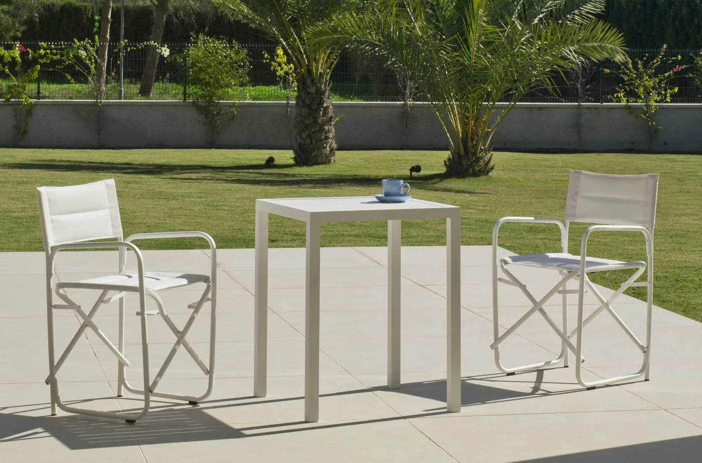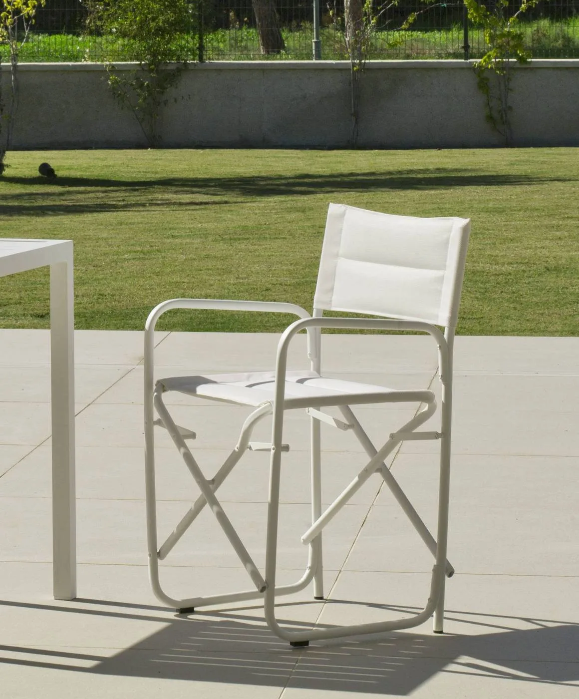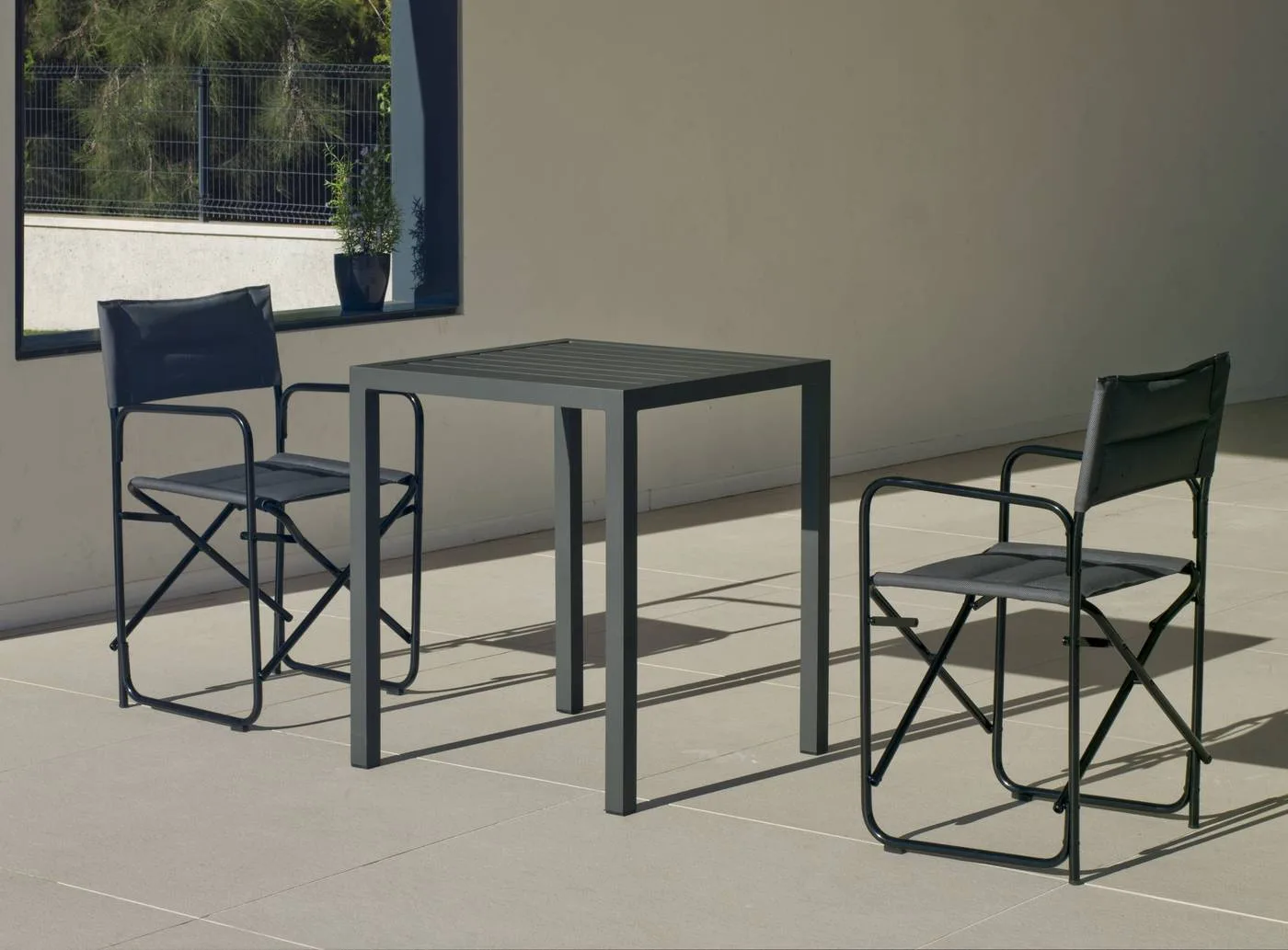 Nuestro silla de Director plegable combina elegancia, confort y practicidad en un diseño contemporáneo, ideal para aquellos que valoran la estética y la funcionalidad. Fabricado con una robusta estructura de aluminio y dotado de un acolchado suave de textilene, esta silla está disponible en dos colores neutros: blanco y gris antracita. Su diseño plegable lo convierte en la opción perfecta para espacios versátiles, desde interiores modernos hasta exteriores elegantes. Descubre cómo esta silla puede transformar cualquier espacio, ofreciendo una combinación única de estilo y comodidad.Puedes combinar esta silla plegable con nuestra mesa cuadrada de aluminio Melea.Medidas