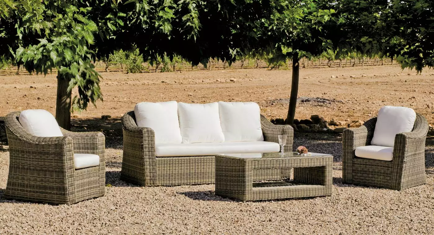 Acabo de recibir mi conjunto de jardín modelo Toscana 8 y no puedo estar más encantada con él. La calidad de los materiales es inmejorable, la cojineria es súper confortable, en un gris precioso. Repelen el agua, por lo que si te cae algún líquido, no tienes que preocuparte, puedes limpiarlo fácilmente con un paño.