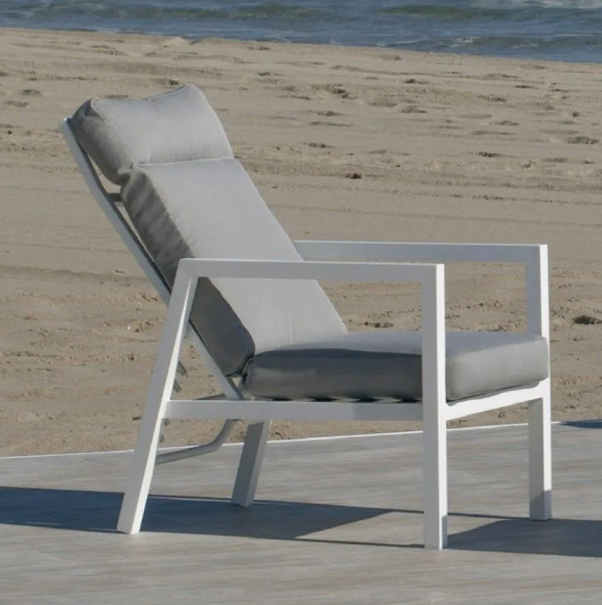 Siente la máxima comodidad y decora tu terraza o jardín con nuestro increíble sillón reclinable de exterior fabricado en aluminio. Esta fantástica silla de terraza reclinable te dará auténticos momentos de relajación y también se convertirá en la pieza central para decorar tu hogar al aire libre.Con su diseño elegante y moderno, este sillón reclinable de exterior añadirá un toque sofisticado en tu jardín o patio. El aluminio utilizado en su fabricación no solo le confiere una apariencia contemporánea, sino que también garantiza su durabilidad y resistencia a los elementos exteriores. ¡No tendrás que preocuparte por el óxido ni por su deterioro a lo largo del tiempo!La comodidad es primordial, y este sillón de terraza reclinable lo sabe muy bien. Gracias a su función reclinable, podrás ajustar fácilmente el respaldo según tus preferencias, encontrando la posición perfecta para leer, tomar el sol o simplemente descansar. Además, cuenta con un acolchado suave y ergonómico que se adapta a tu cuerpo, brindándote un apoyo óptimo en cada momento.Fabricamos la estructura de esta silla reclinable de terraza en seis colores distintos; champagne, blanco, gris antracita, negro, plata y marrón.Esta butaca de exterior reclinable forma parte de nuestro Conjunto de muebles de jardín Voriam. Otra opción muy popular es la silla de jardín reclinable con reposapiés, aquí te dejamos el enlace para que puedas echarle un vistazo.Dimensiones de este sillón reclinable