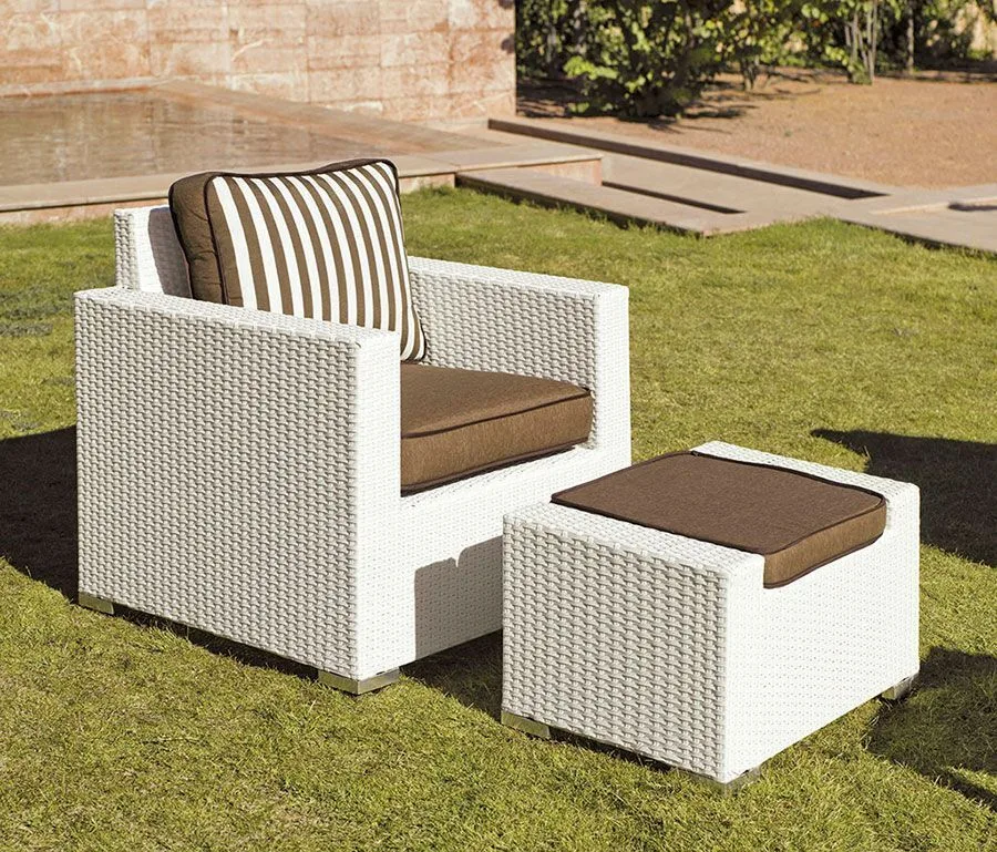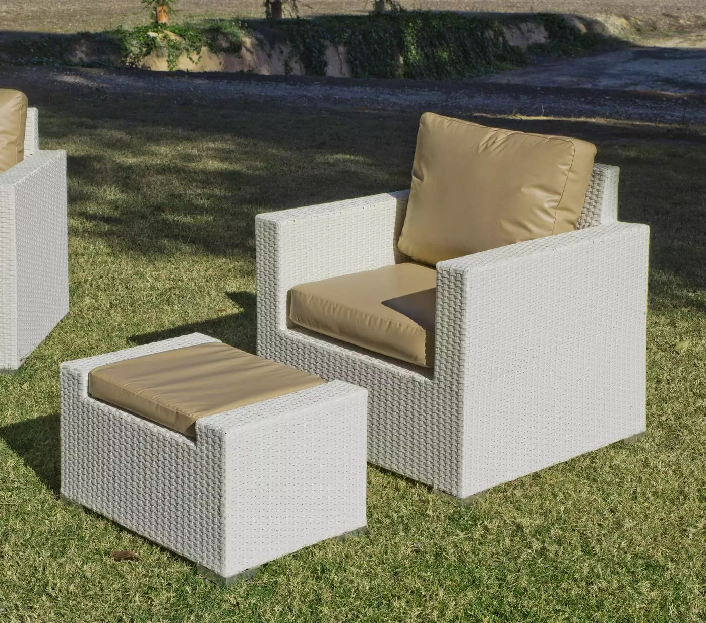 *Reposapiés no incluido en el precio.Si te gusta este modelo de sillón de ratán prueba a combinarlo con nuestra mesa auxiliar de ratán blanco Niza y añade un toque distinto a la decoración de tu jardín.