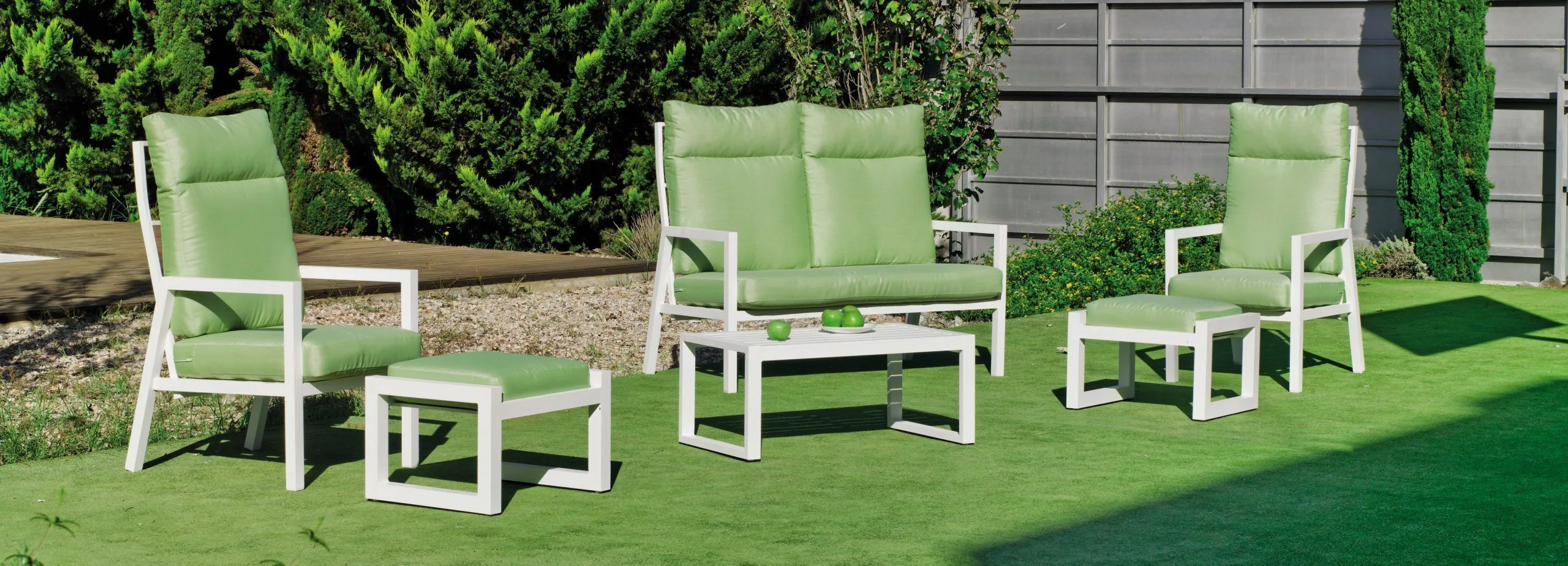 El material de aluminio y las fundas de los sofás personalizadas son de excelente calidad.