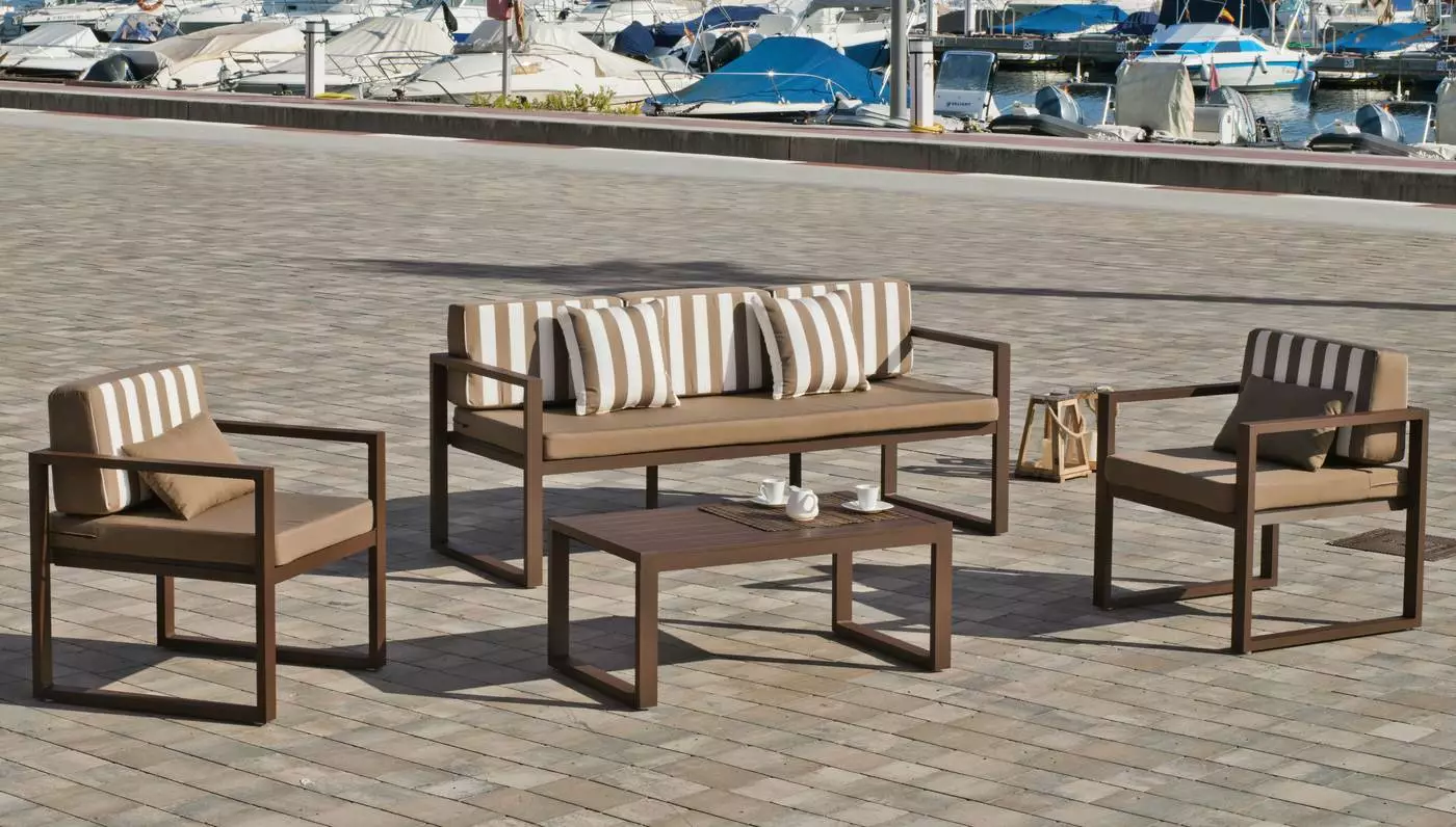 El material de aluminio y las fundas de los sofás personalizadas son de excelente calidad.