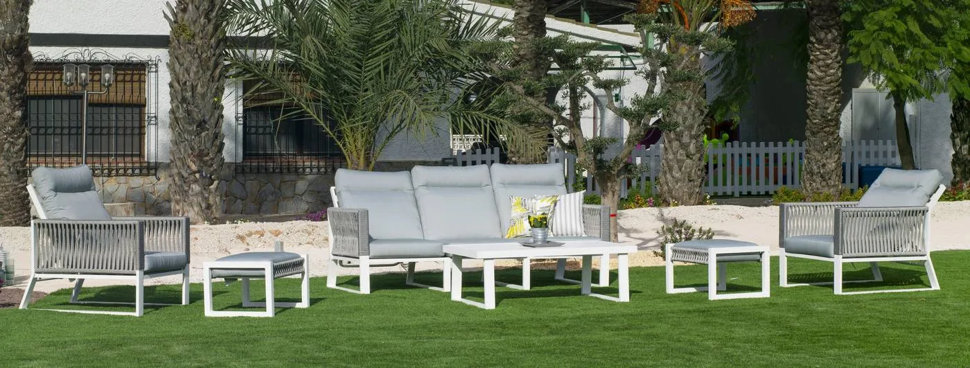 Acabo de recibir mi conjunto de jardín modelo Toscana 8 y no puedo estar más encantada con él. La calidad de los materiales es inmejorable, la cojineria es súper confortable, en un gris precioso. Repelen el agua, por lo que si te cae algún líquido, no tienes que preocuparte, puedes limpiarlo fácilmente con un paño.