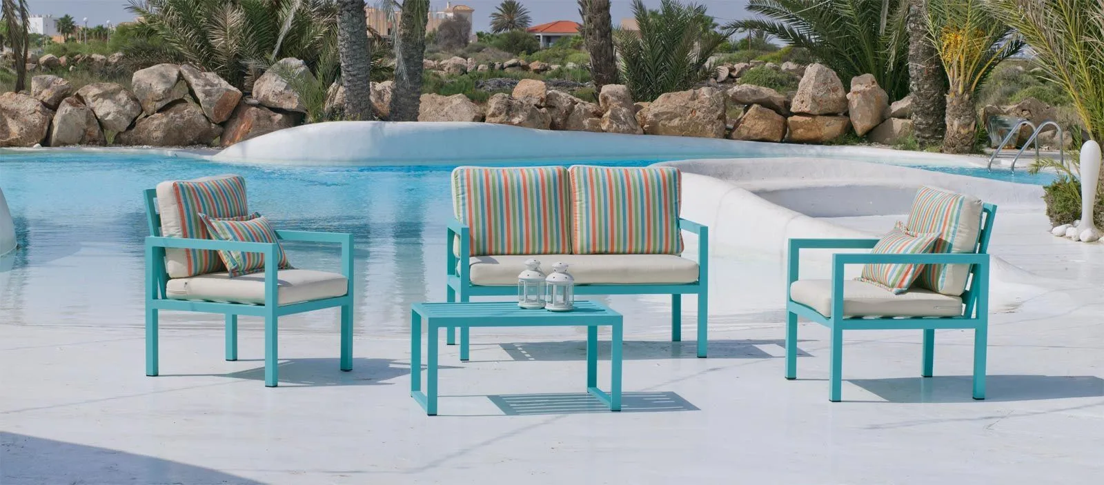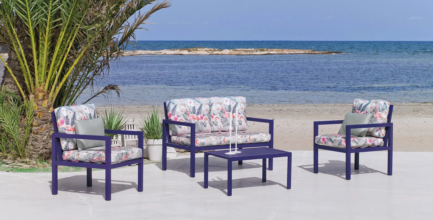 El material de aluminio y las fundas de los sofás personalizadas son de excelente calidad.