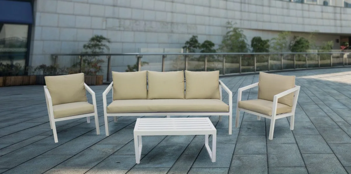 El material de aluminio y las fundas de los sofás personalizadas son de excelente calidad.