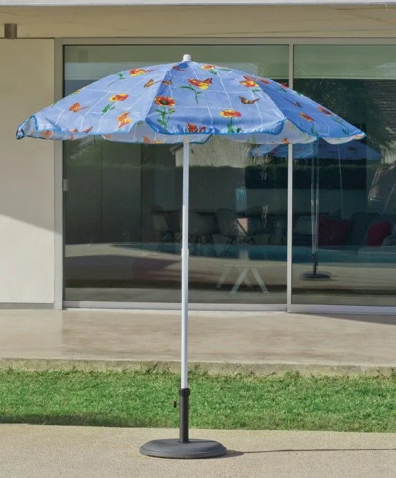 Gracias a su diámetro, garantiza sombra para toda la familia. Por sus características técnicas, puede emplearse como sombrilla portátil en playas, piscinas o jardines.Su mástil es inclinable y está fabricado en aluminio con tubo de Ø 32, lo que aumenta su resistencia y disminuye su peso. Su toldo de lona con 8 varillas de doble refuerzo te proporcionará protección contra los rayos UVA con un tamaño de Ø 200 cm. te dará la máxima seguridad contra el viento.