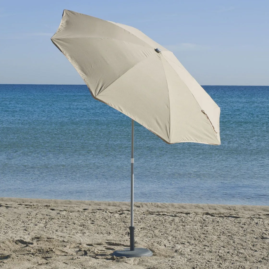 Gracias a su diámetro, garantiza sombra para toda la familia. Por sus características técnicas, puede emplearse como sombrilla portátil en playas, piscinas o jardines.Su mástil es inclinable y está fabricado en aluminio con tubo de Ø 32, lo que aumenta su resistencia y disminuye su peso. Su toldo de lona con 8 varillas de doble refuerzo te proporcionará protección contra los rayos UVA con un tamaño de Ø 240 cm. te dará la máxima seguridad contra el viento.Disponemos de una gran variedad de colores para la lona. Escríbenos y nos dices que color necesitas.